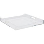 With a Chippendale influenced design, the Hanson Square Tray features simple yet unique Lucite, trim details and rectangle open handles to make a chic and modern butler’s tray. Designed by Jamie Merida.