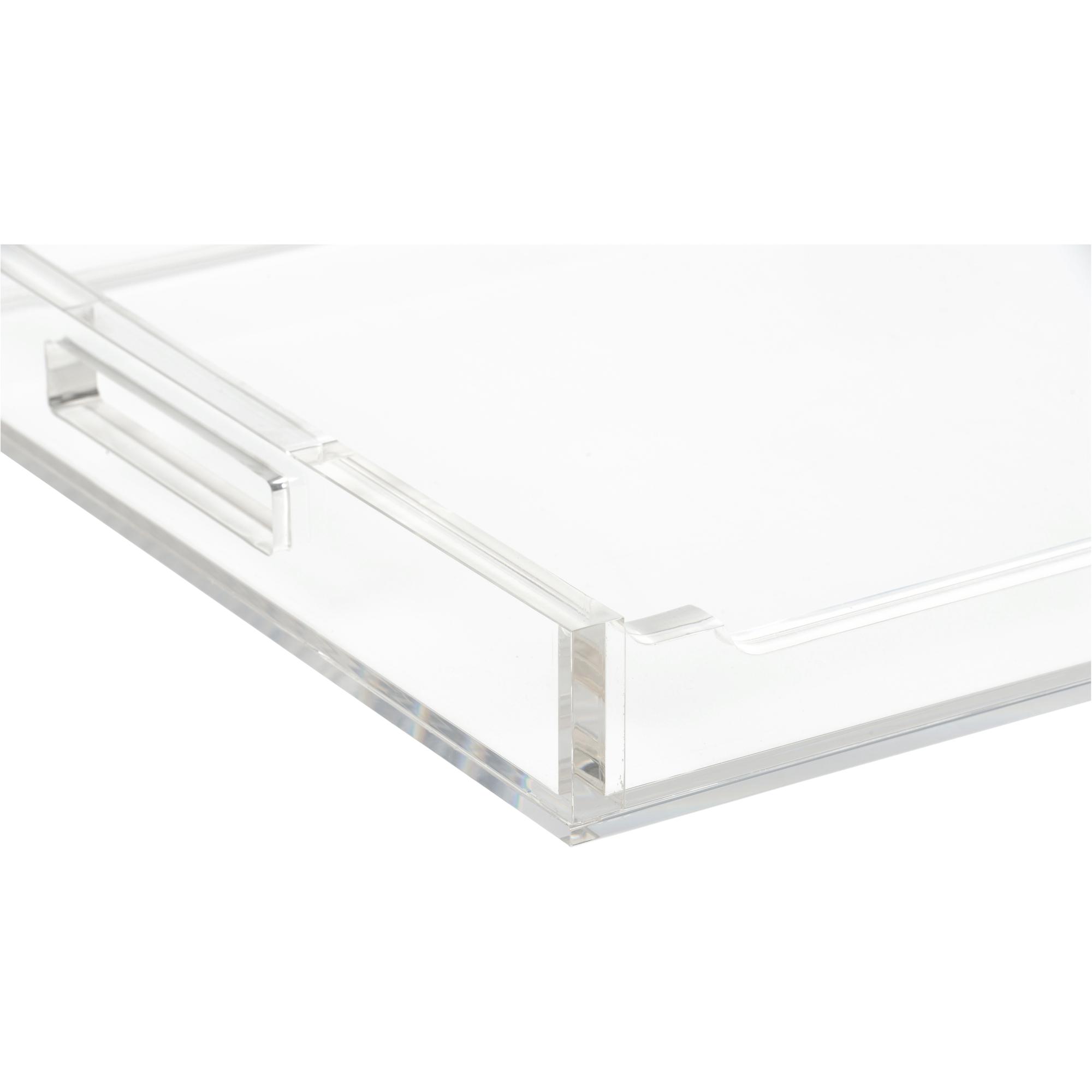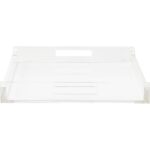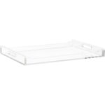 With a Chippendale influenced design, the Hanson Tray features simple yet unique Lucite, trim details and rectangular open handles to make a chic and modern butler’s tray. Designed by Jamie Merida.
