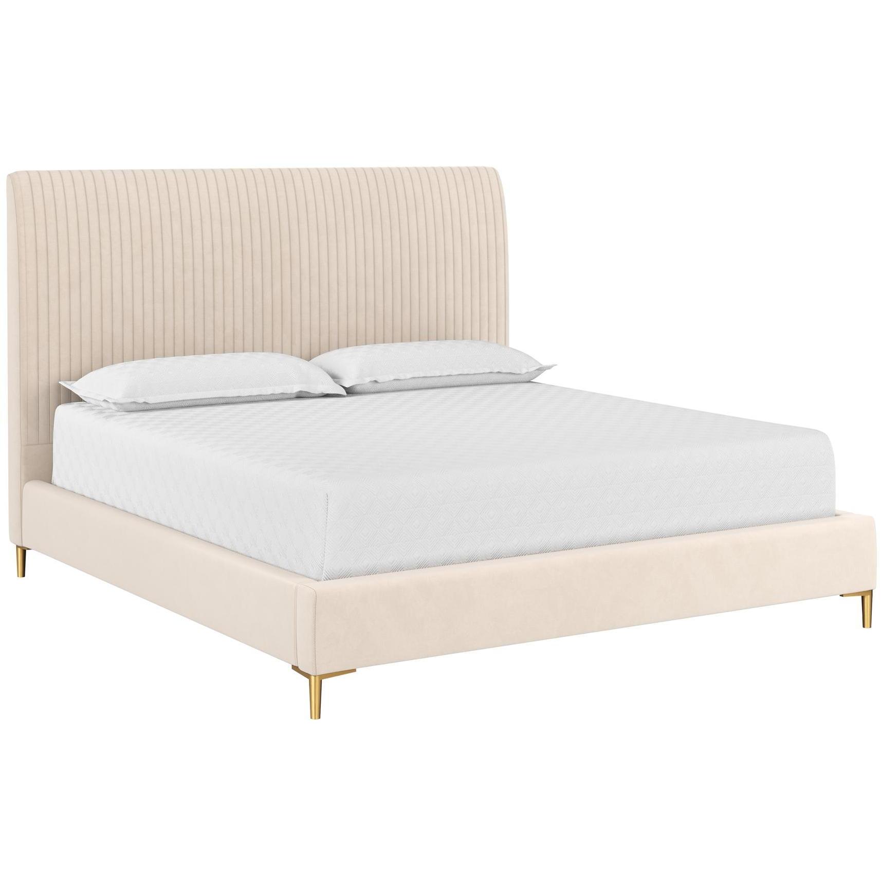 Add a touch of modern style to any bedroom space with this comfortable bed. Upholstered in casablanca cloud performance fabric, and features fine vertical tufting on the headboard. Completed with stainless steel gold legs. No box spring is required and slats are included. Performance fabric is moisture repellent, durable and easy to clean.