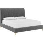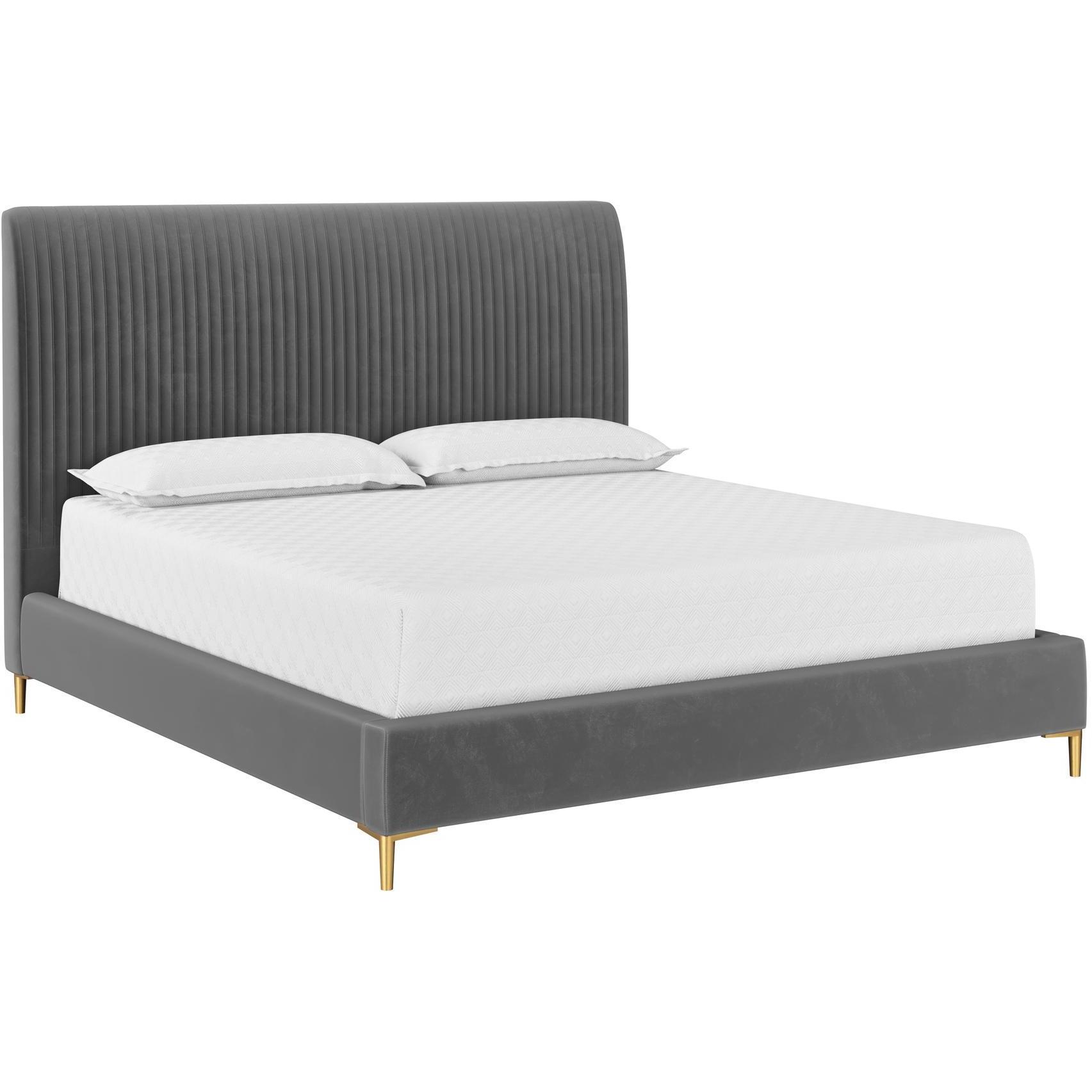 Add a touch of modern style to any bedroom space with this comfortable bed. Upholstered in casablanca storm performance fabric, and features fine vertical tufting on the headboard. Completed with stainless steel gold legs. No box spring is required and slats are included. Performance fabric is moisture repellent, durable and easy to clean.