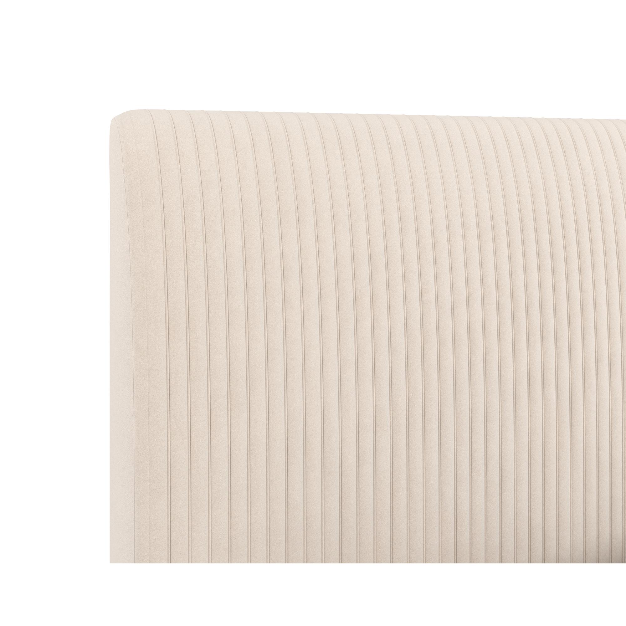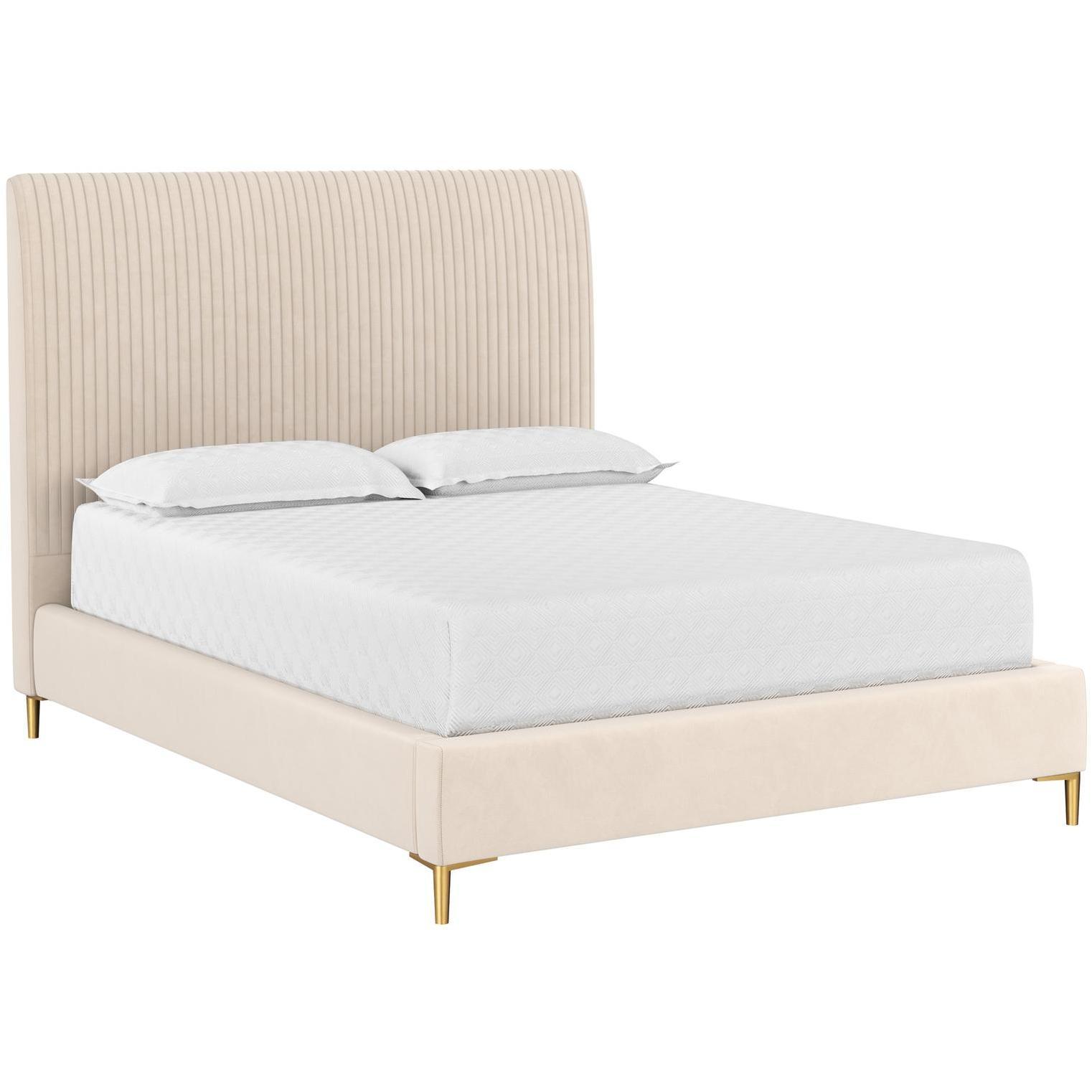 Add a touch of modern style to any bedroom space with this comfortable bed. Upholstered in casablanca cloud performance fabric, and features fine vertical tufting on the headboard. Completed with stainless steel gold legs. No box spring is required and slats are included. Performance fabric is moisture repellent, durable and easy to clean.