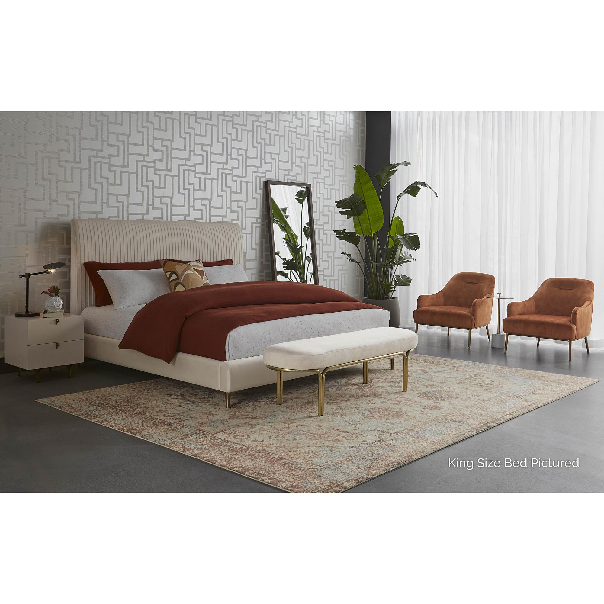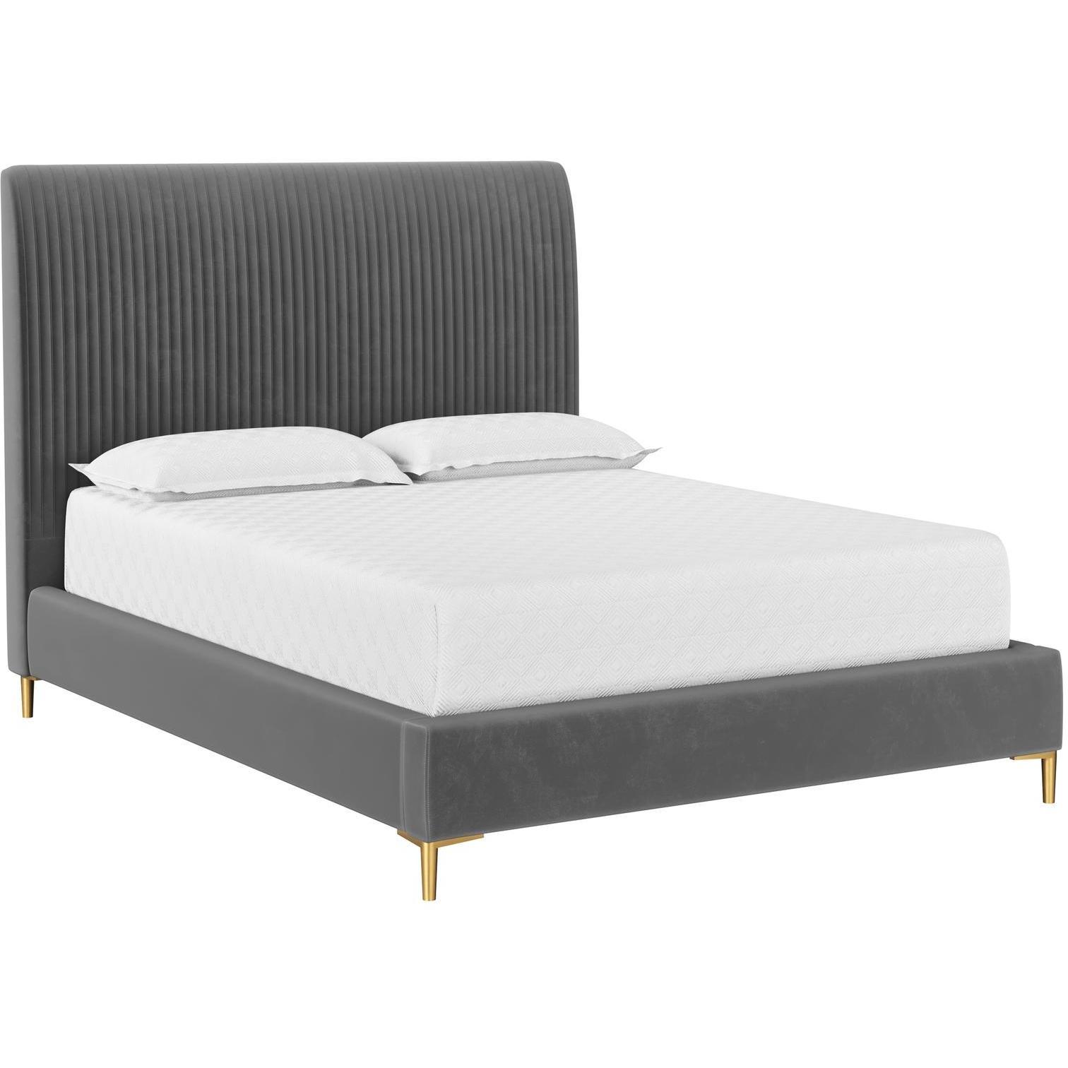Add a touch of modern style to any bedroom space with this comfortable bed. Upholstered in casablanca storm performance fabric, and features fine vertical tufting on the headboard. Completed with stainless steel gold legs. No box spring is required and slats are included. Performance fabric is moisture repellent, durable and easy to clean.