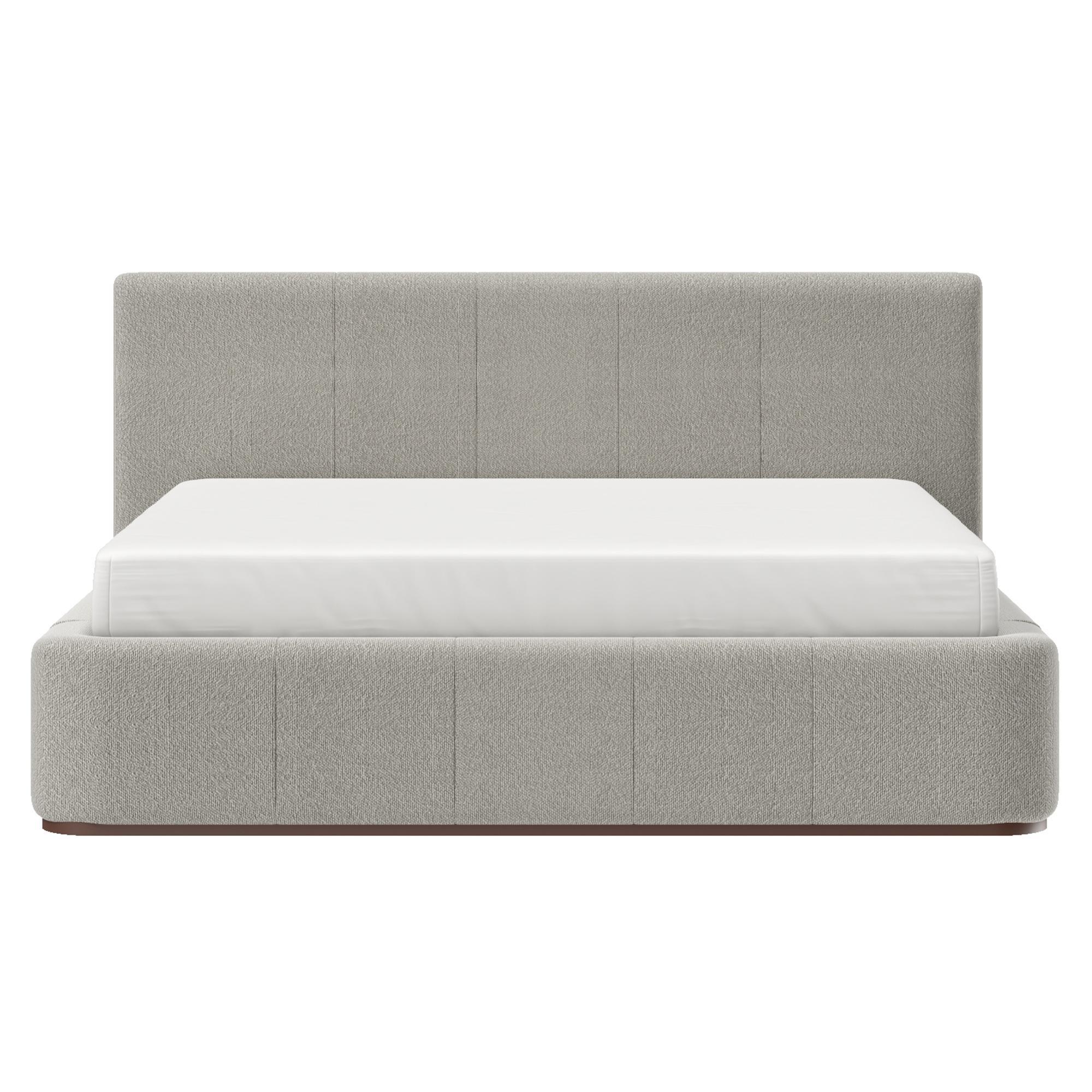 Little details go a long way with this gorgeous bed. The thick cushioning on the head and footboards and all along the side rails ooze comfort. The curved edging on the footboard, with the solid wood walnut base oozes style. The two-toned, mushroom colour textured fabric is the ideal finishing touch, creating the perfect piece for your sleep sanctuary.