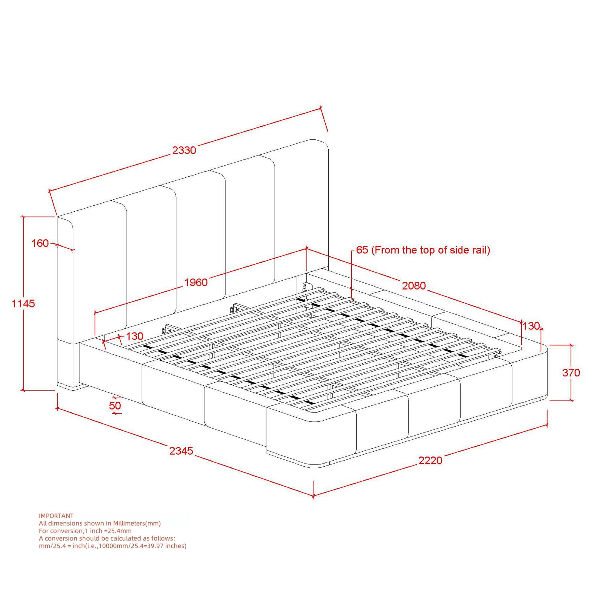 - Modern platform bed; no box spring required