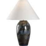 The Hatsu Table Lamp, part of the Shiga collection, is a stunning blend of traditional Japanese craftsmanship and modern design. Handcrafted with a unique combination of textured clay and a smooth, glossy glaze, this lamp embodies the balance between raw, natural elements and refined artistry. The deep indigo tones create a rich contrast against the rugged texture of the ceramic body, adding depth and dimension to the piece.