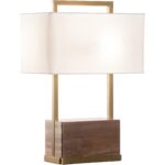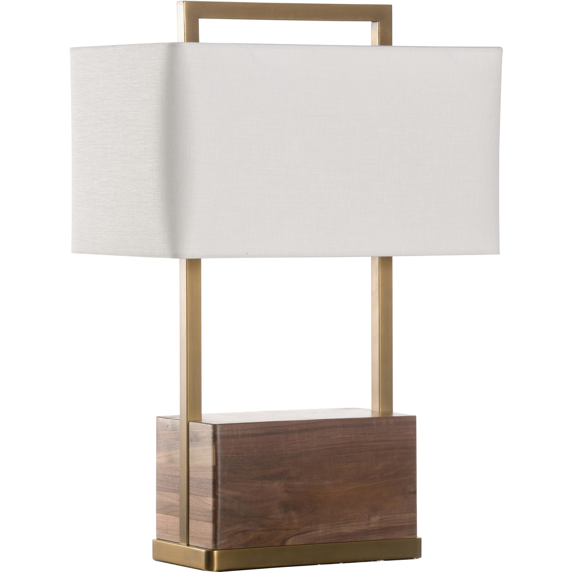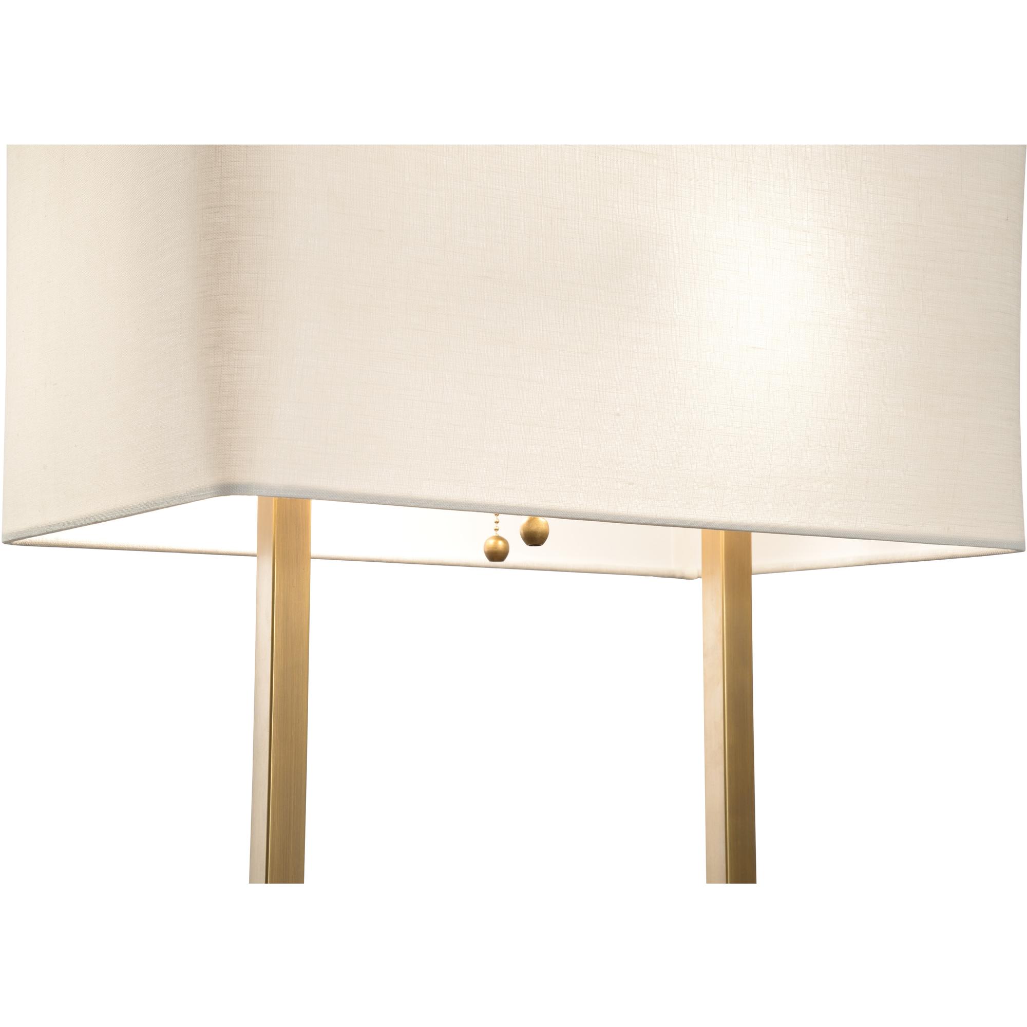 Crafted of walnut and antique brass, this stately table lamp boosts a sophistication at a large scale. The Hayes Table Lamp is topped with a suspended linen shade and features two lights with pull chains that will provide ample lighting on an end table or desk.