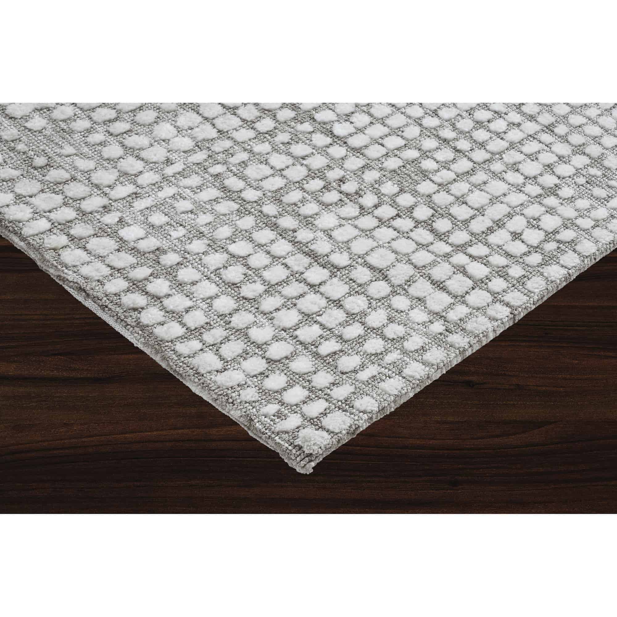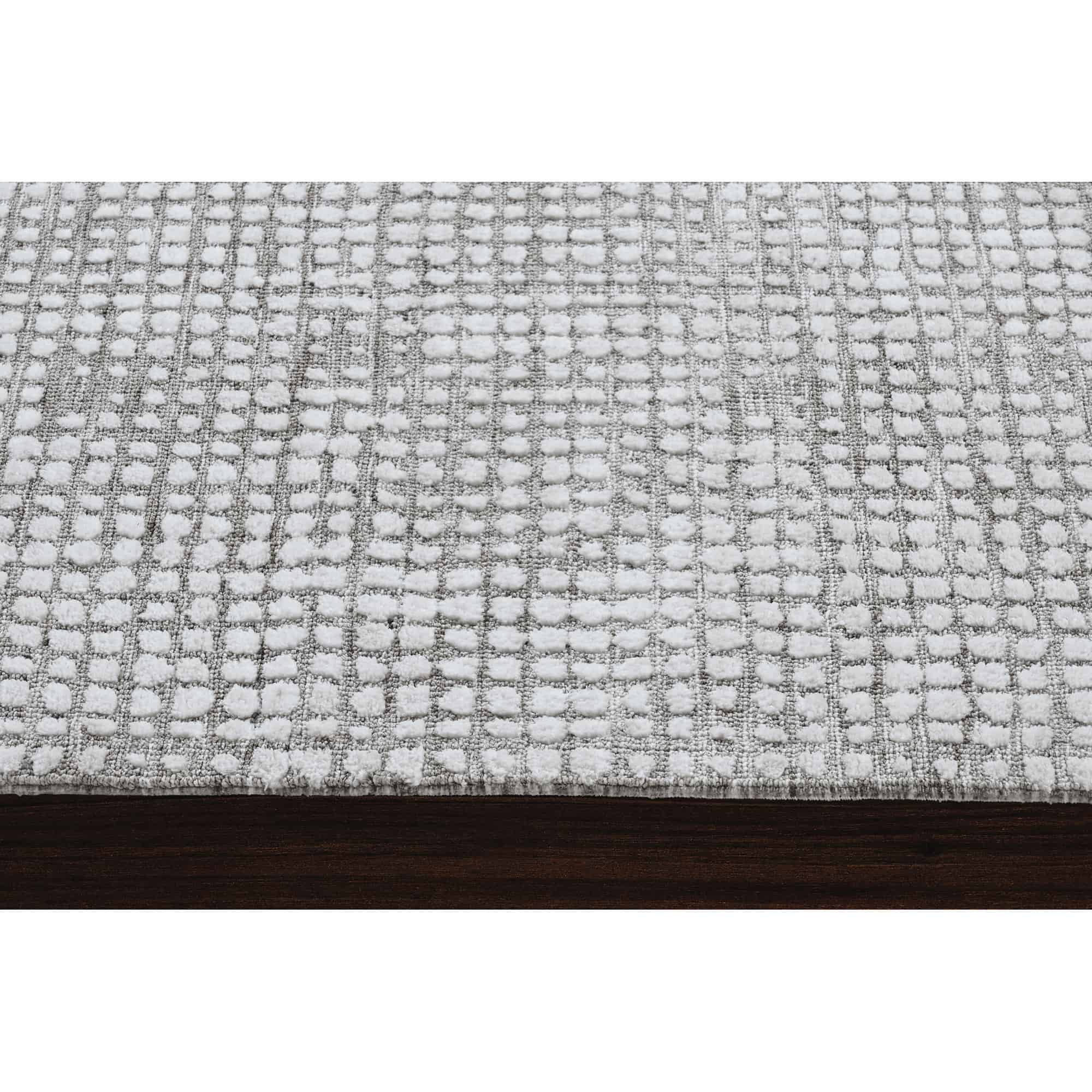 Available in five different sizes, this rug design holds equal beauty in every dimension. Composed of machine knitted micro polyester, it has a unique structure that incorporates texture to the space and the touch. With timeless neutral tones of taupe and ivory coming together in every square, it holds an effortless style fit for the luxe living space.