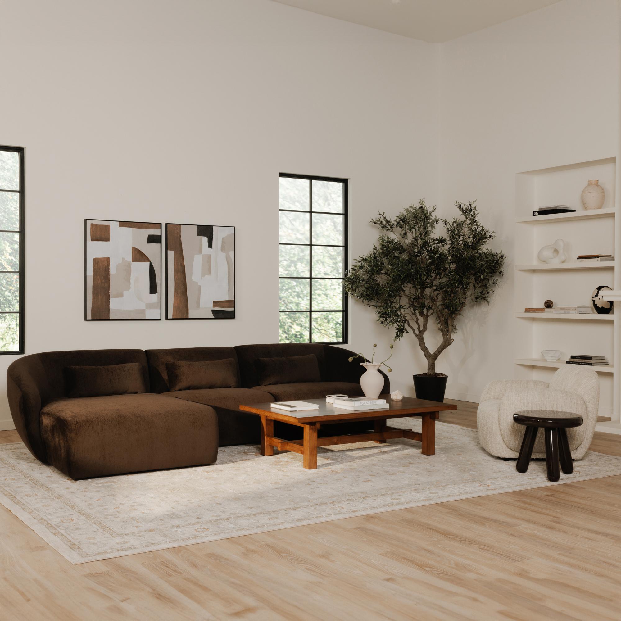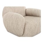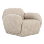 The Hazel lounge chair embraces minimalist, understated elegance with its low-profile, modernist silhouette. Wrapped in exaggerated boucle fabric, it offers a distinct tactility and comfort. The bold, curved arm design makes a stylish statement, harmonizing with the sleek form to create an inviting focal point in any setting.