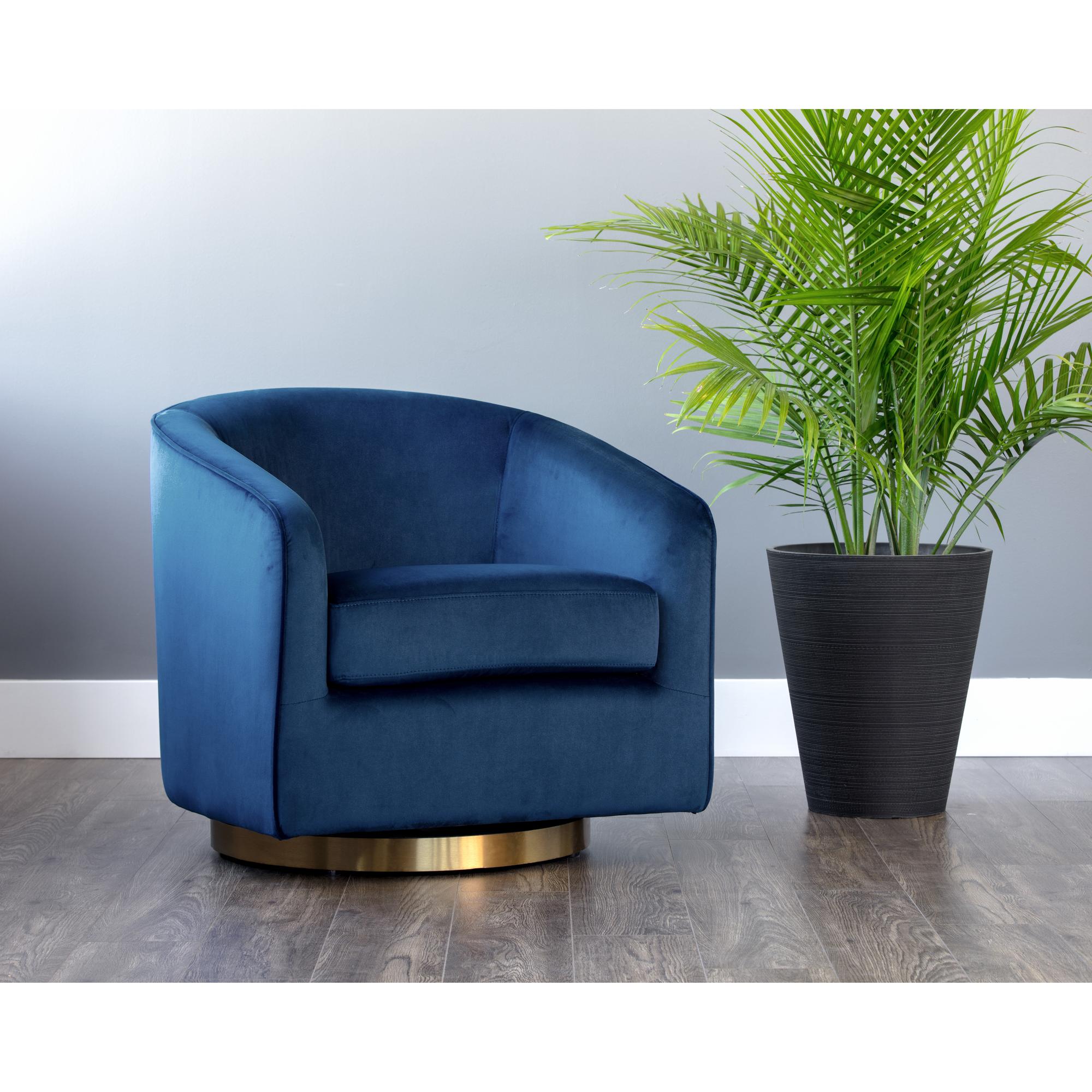 Hazel Swivel Lounge Chair – Gold – Navy Blue Sky