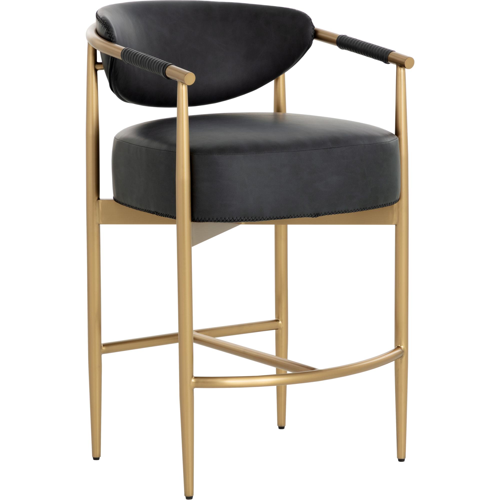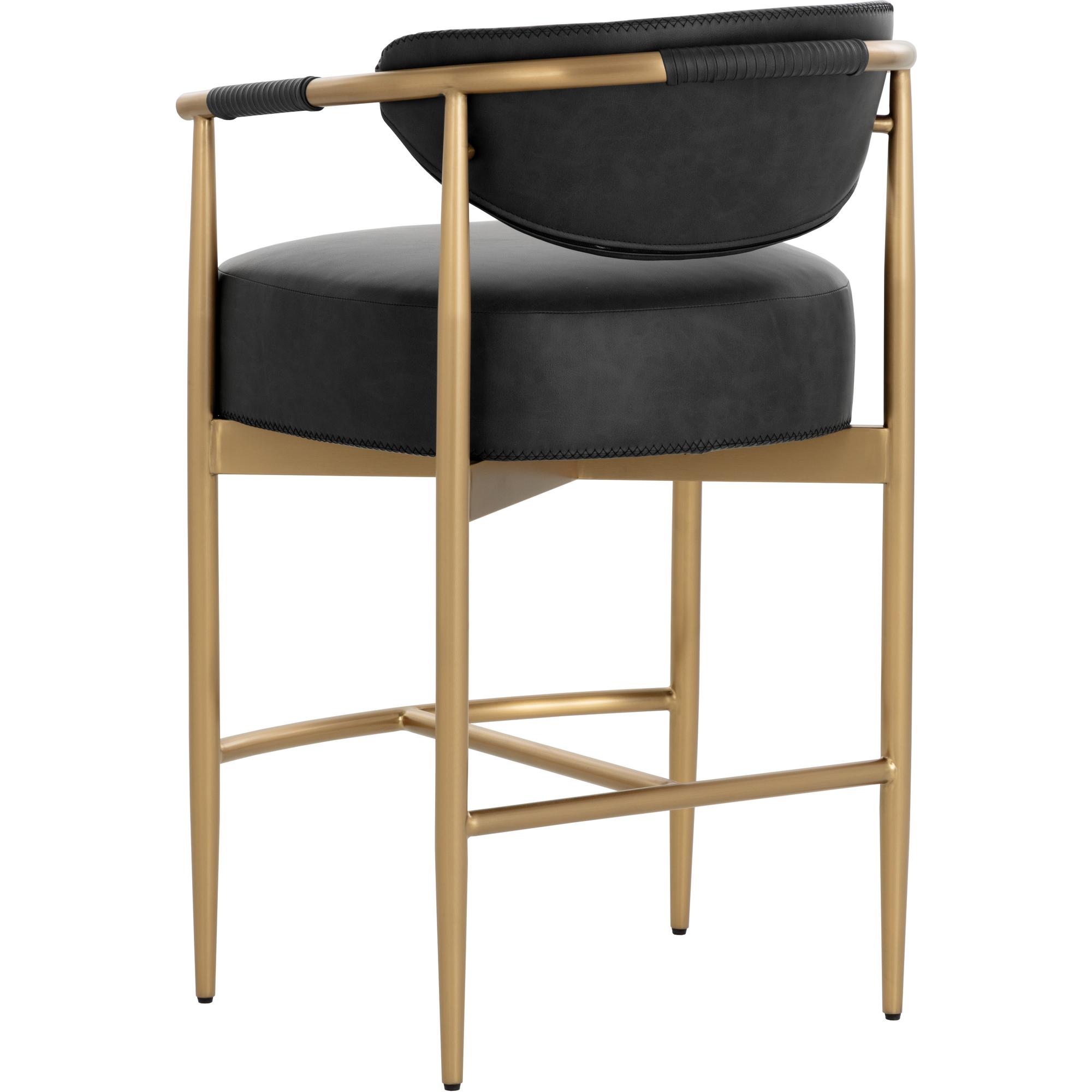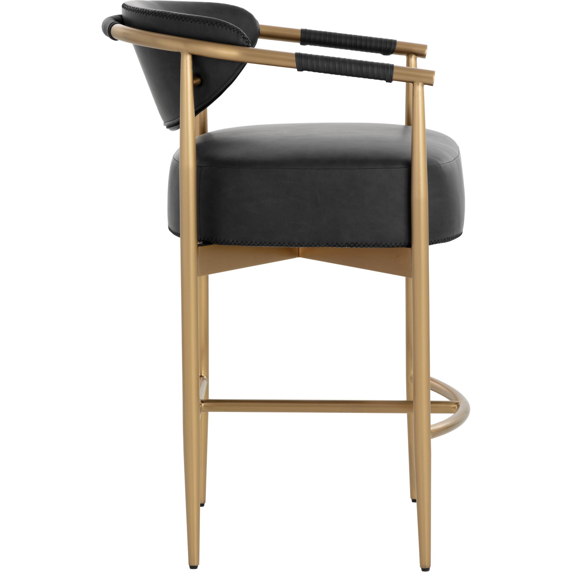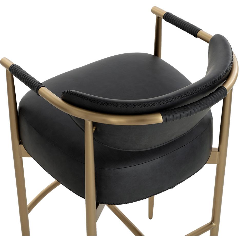 Every detail that makes up the handsome Heloise Counter Stool is designed with purpose. Bravo black faux leather upholstery and rope detailing is paired with powder-coated gold stainless steel for optimal style and comfort. Visible stitching on the seat and backrest accentuates the chair’s smooth contours. This elegant barstool will perfectly complement any dining space. Handle With Care: This design has been crafted with faux leather. Faux leather is manufactured to reflect the natural characteristics of leather; as such, colour variations, markings, wrinkles, grooves, and light scratches are appreciated characteristics. No two pieces will be alike. Visit our Product Care page for more information on how to ensure the lasting beauty of this piece.