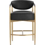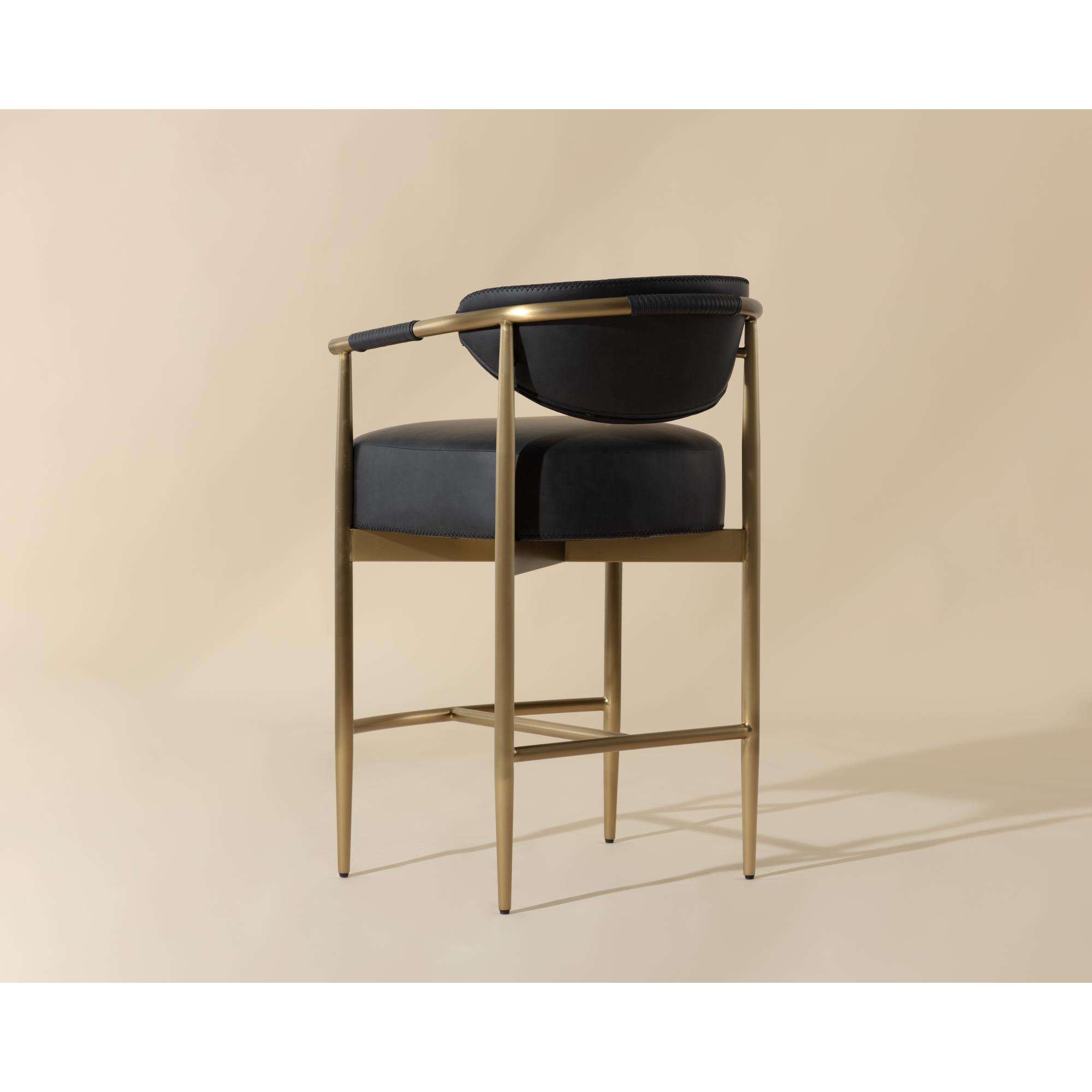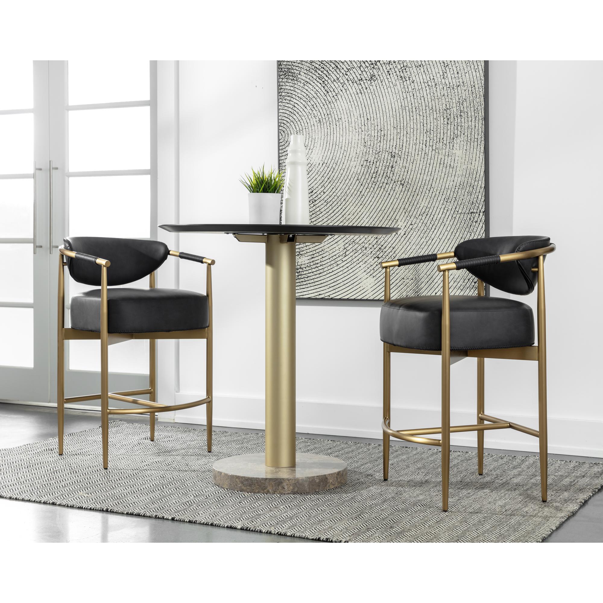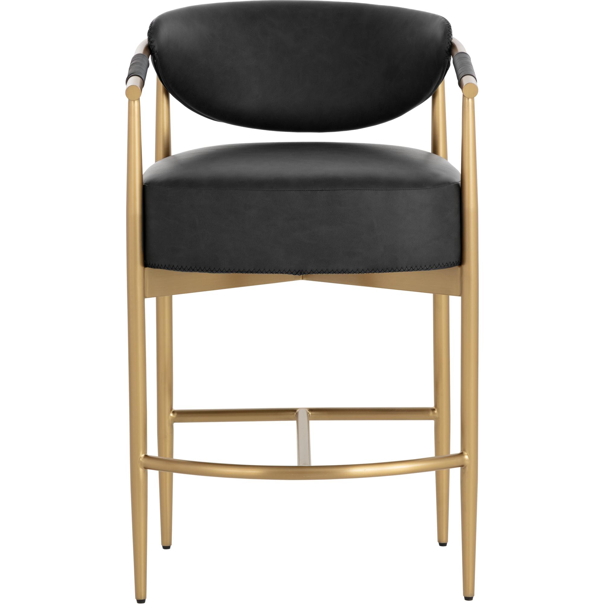 Every detail that makes up the handsome Heloise Counter Stool is designed with purpose. Bravo black faux leather upholstery and rope detailing is paired with powder-coated gold stainless steel for optimal style and comfort. Visible stitching on the seat and backrest accentuates the chair’s smooth contours. This elegant barstool will perfectly complement any dining space. Handle With Care: This design has been crafted with faux leather. Faux leather is manufactured to reflect the natural characteristics of leather; as such, colour variations, markings, wrinkles, grooves, and light scratches are appreciated characteristics. No two pieces will be alike. Visit our Product Care page for more information on how to ensure the lasting beauty of this piece.