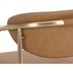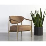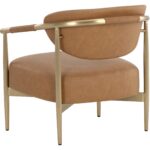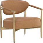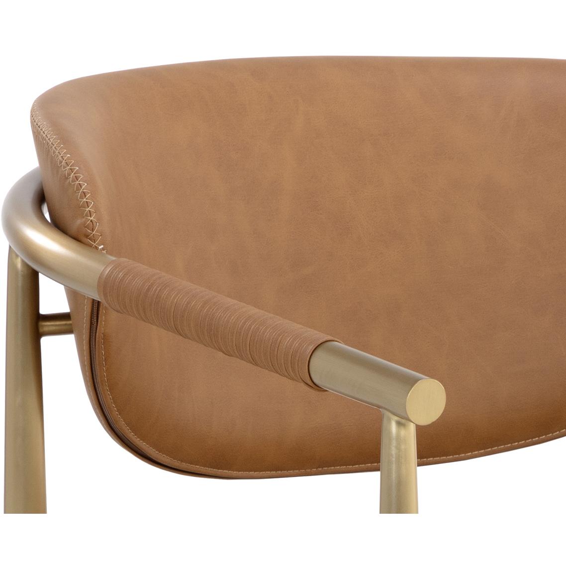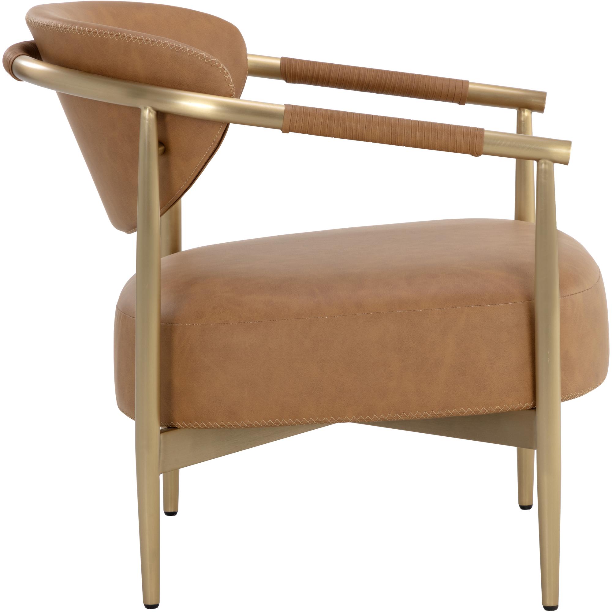 Every detail that makes up the handsome Heloise Lounge Chair is designed with purpose. Milliken cognac faux leather upholstery and rope detailing is paired with powder-coated gold stainless steel for optimal style and comfort. Visible stitching on the seat and backrest accentuates the chair’s smooth contours. This versatile lounge chair is the perfect accent to any bedroom corner or living space. Handle With Care: This design has been crafted with faux leather. Faux leather is manufactured to reflect the natural characteristics of leather; as such, colour variations, markings, wrinkles, grooves, and light scratches are appreciated characteristics. No two pieces will be alike. Visit our Product Care page for more information on how to ensure the lasting beauty of this piece.