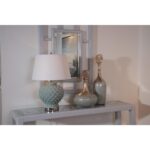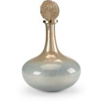 Elegant and contemporary, this genie bottle is crafted of sleek art glass with an ombre finish. The blue, silver and amber color palette is topped with a removable textured iron finial with a nickel finish. This lovely accent is ideal for a console in the foyer, a dresser in the bedroom or a table in the living area. Also pair with our medium and large Helsinki bottles for a focal point in your design.