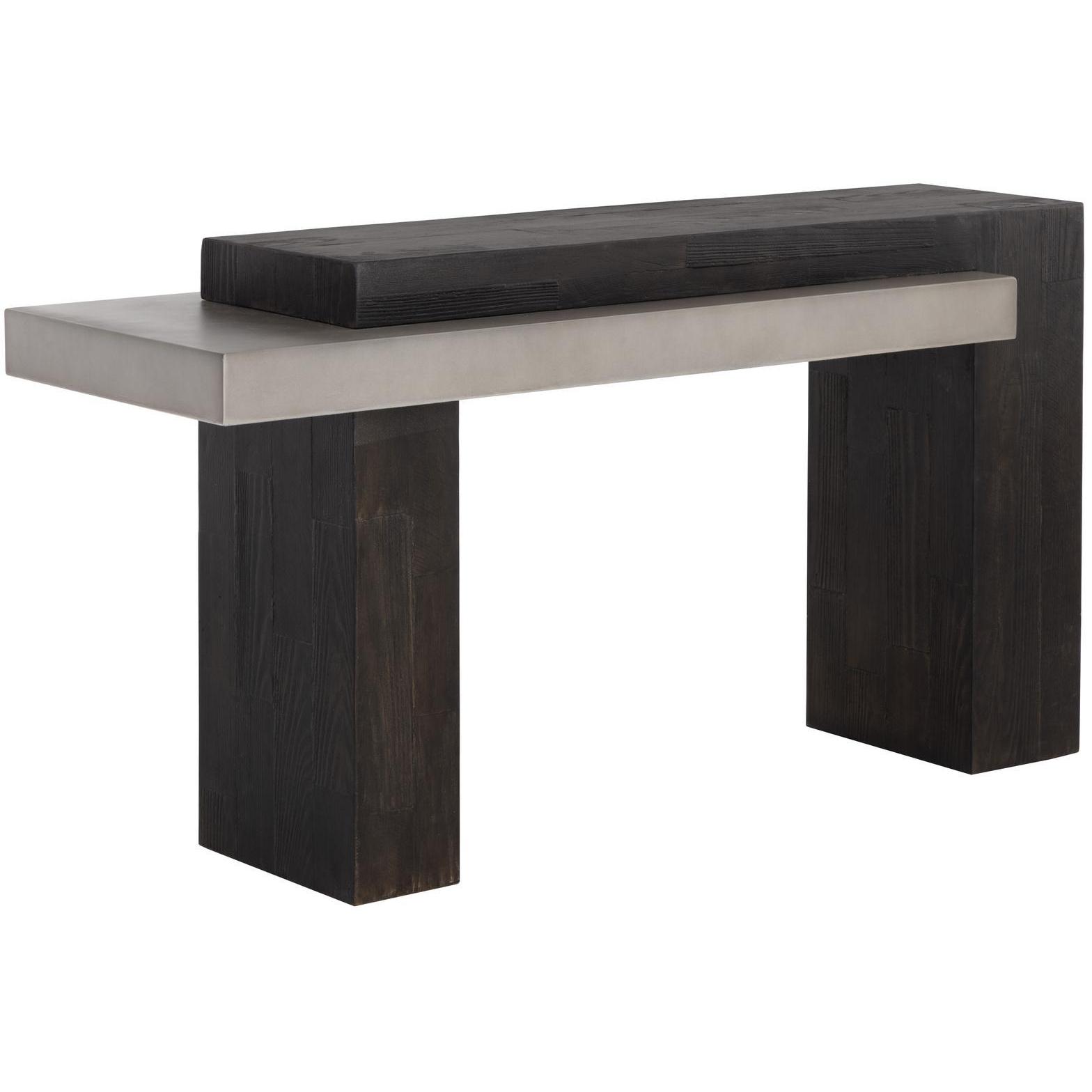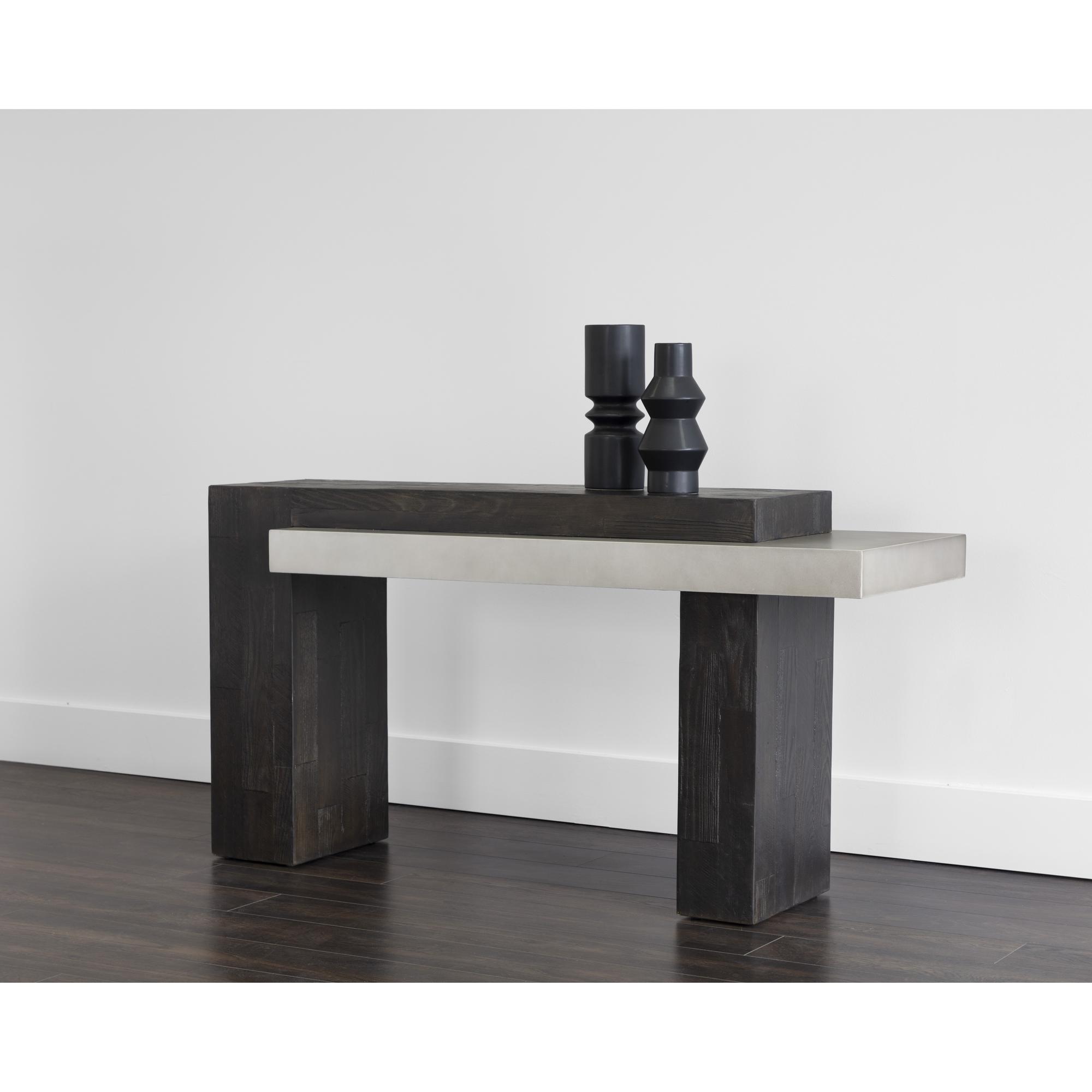 With an eye-catching design, this striking console table exudes an impressive contemporary style. Features a base crafted from dark brown concrete with a fascinating timber effect. Completed with an accenting grey concrete slab.
