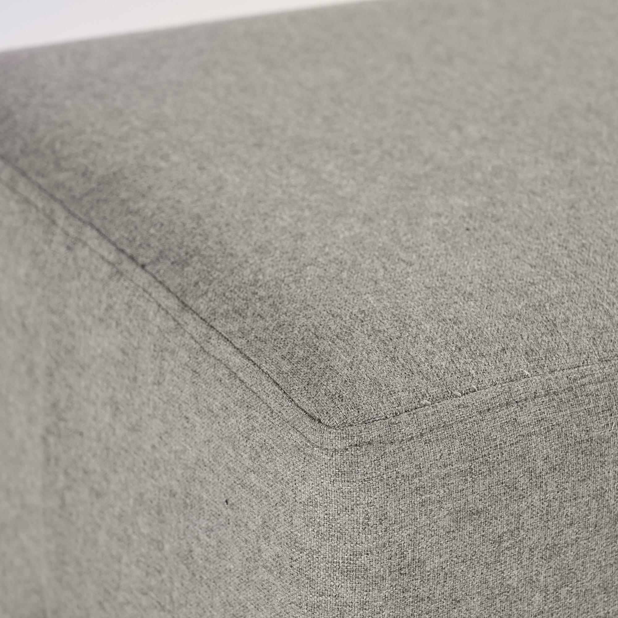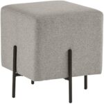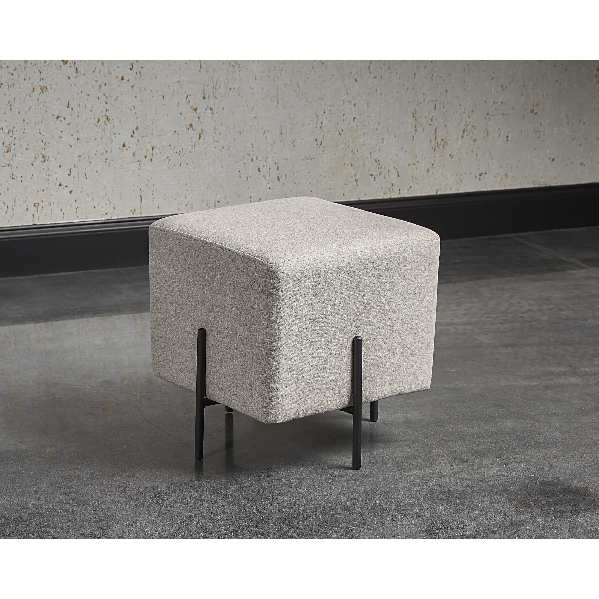 A square ottoman from our Urban Unity collection. This compact ottoman will add a minimalist mid-century style to any space. A tubular black powder coated steel frame creates additional intrigue. Available in dorset platinum performance fabric. Performance fabric is moisture repellent, durable and easy to clean.