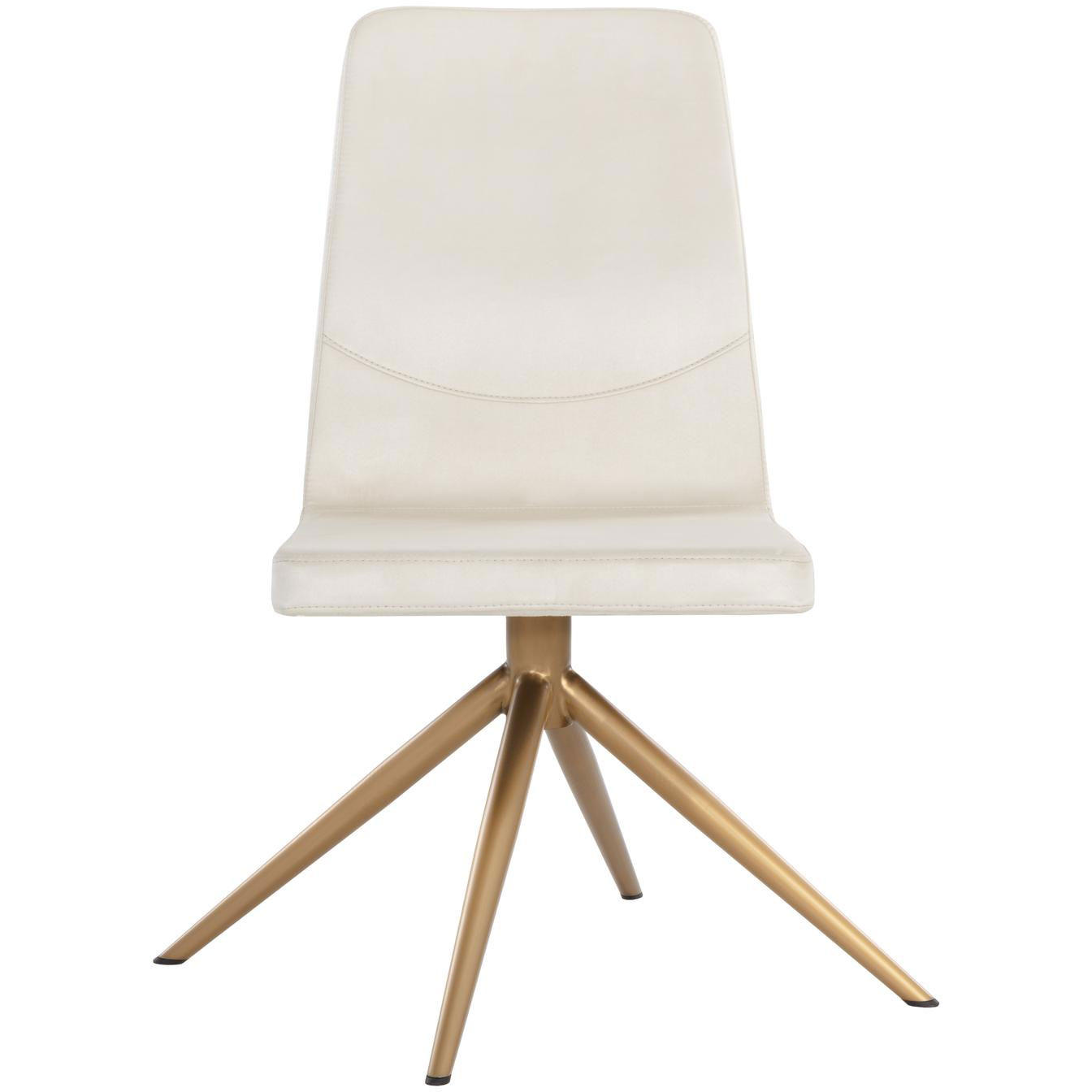 Chic and polished, this stunning dining rmchair unifies the best of style and function. Upholstered in vienna cream fabric and completed with stainless steel legs in a gold finish. Also available in an armrest version in chacha cream fabric.