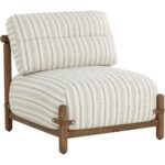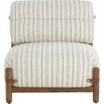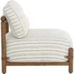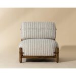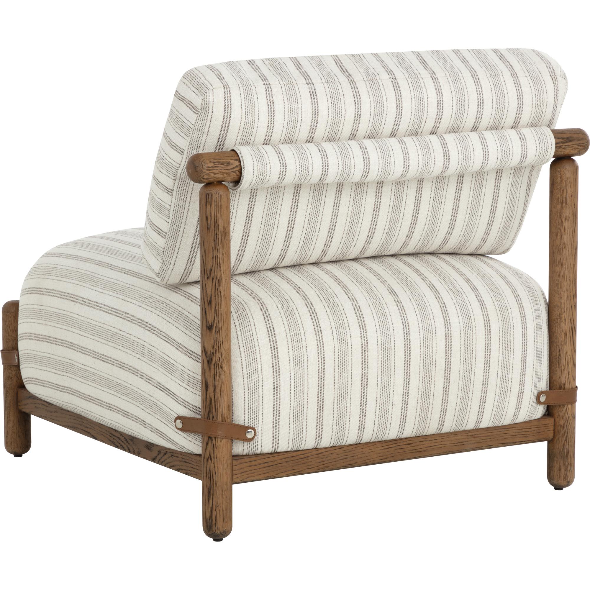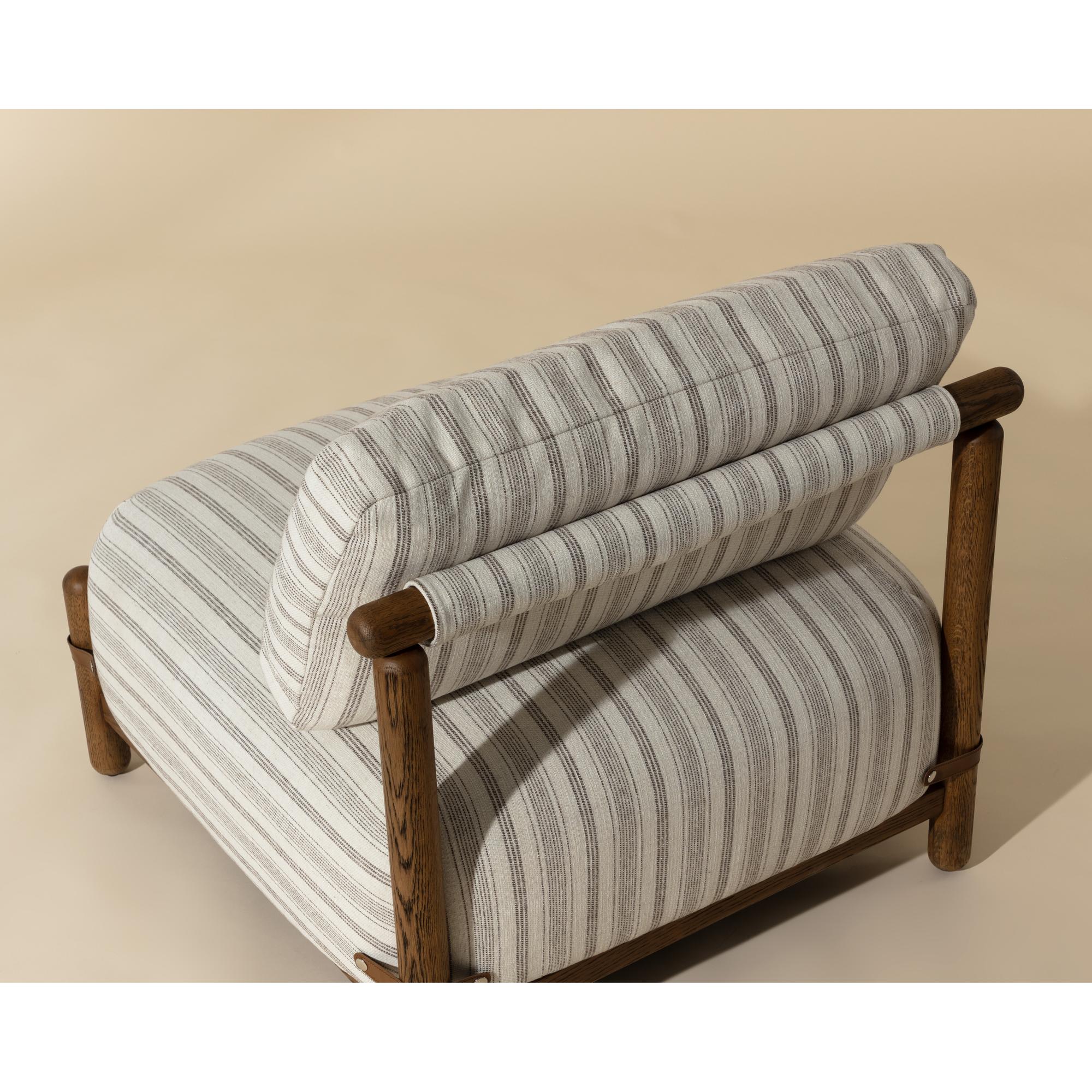 With its relaxed form and classic striped print, the Holst Lounge Chair brings casual luxury to the forefront. A minimal frame made from brown oak wood supports plush cushions upholstered in gifford script fabric that is finished with leather strap detailing to complete the airy mid-century design.