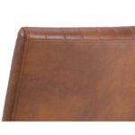 This compact dining armchair from our Ikon collection will bring a sophisticated industrial style to any space. Features bold channel stitching on the seat and seatback and finished with a brushed antique brass frame. Available in bravo cognac faux leather. Handle With Care: This design has been crafted with faux leather. Faux leather is manufactured to reflect the natural characteristics of leather; as such, colour variations, markings, wrinkles, grooves, and light scratches are appreciated characteristics. No two pieces will be alike. Visit our Product Care page for more information on how to ensure the lasting beauty of this piece.