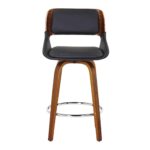 Hudson 26″ Counter Stool with Swivel in Black Faux Leather and Walnut