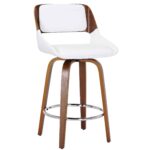 Hudson 26″ Counter Stool with Swivel in White Faux Leather and Walnut