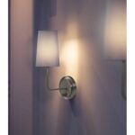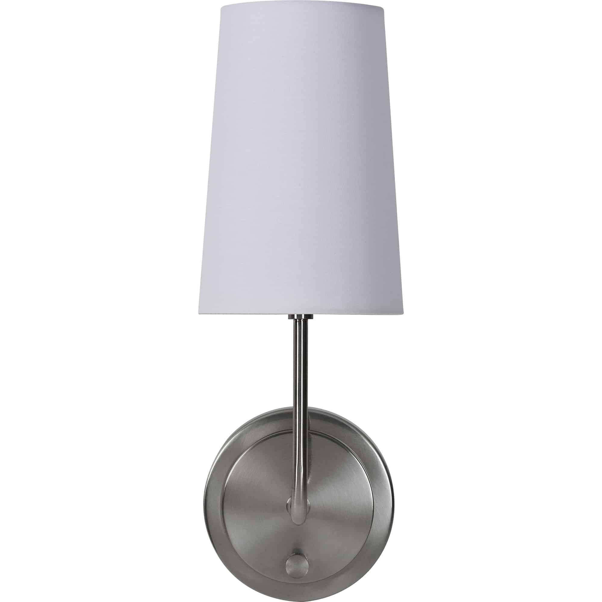 The traditional sconce gets an update with a narrow off-white cotton shade. The satin nickel-plated finished iron structure has a classic design, making it fit seamlessly with many décor styles. Hang a pair in the study for a sophisticated look.