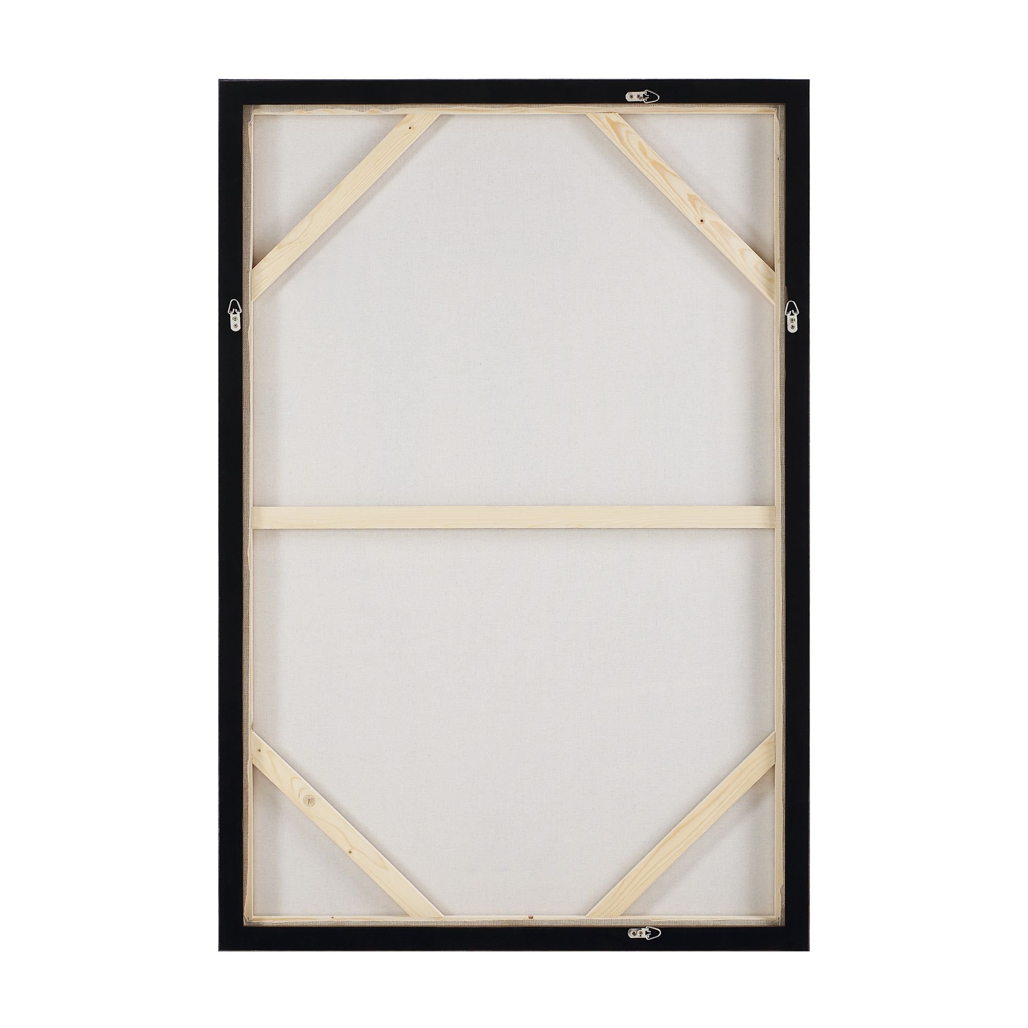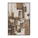 A study in transparency and layering, this abstract painting has a collage-like vibe achieved with paint and texture. Hand painted on high-quality linen, warm shades of brown impart a cozy feel in any space lucky enough to have it. Finishing off the high-end look, a black oak frame gives it gallery appeal and lets you skip the frame shop.