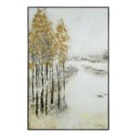 Delivering style for miles, this landscape painting will capture attention as its horizon extends off into the distance. Painted in soft shades of green and blue with hand-applied embellishments, this textured wall art delivers depth and interest to any space. Oversized and surrounded by a grey wood frame, it’s sure to make a big impact.