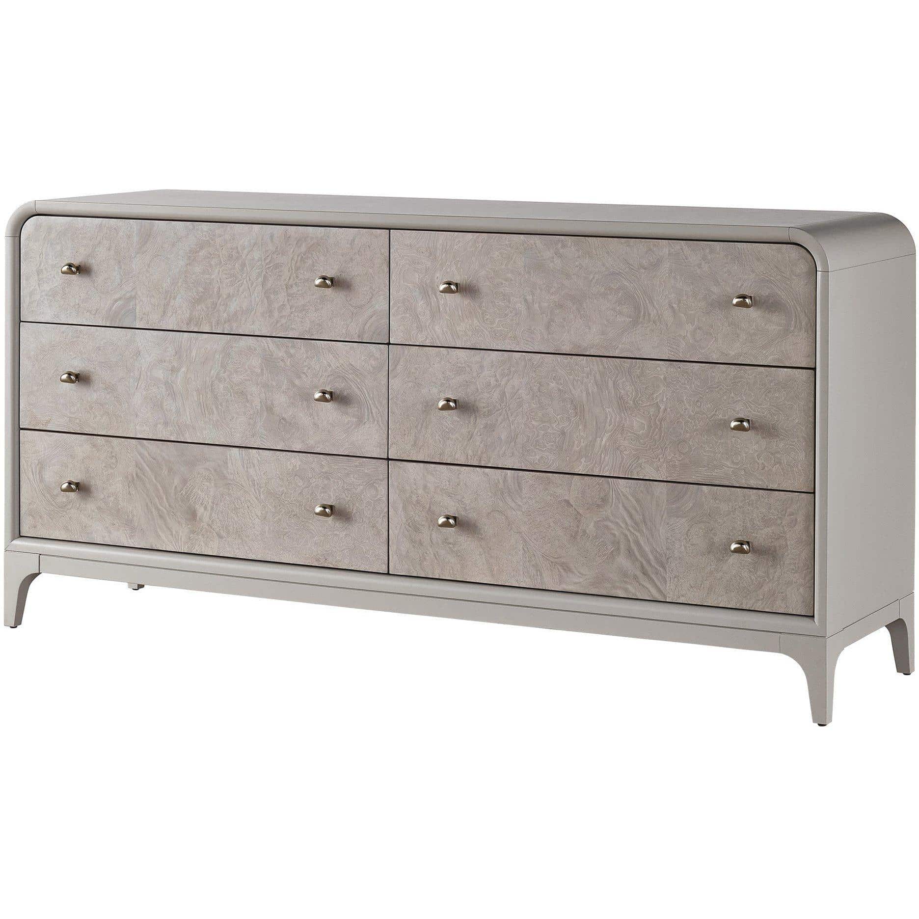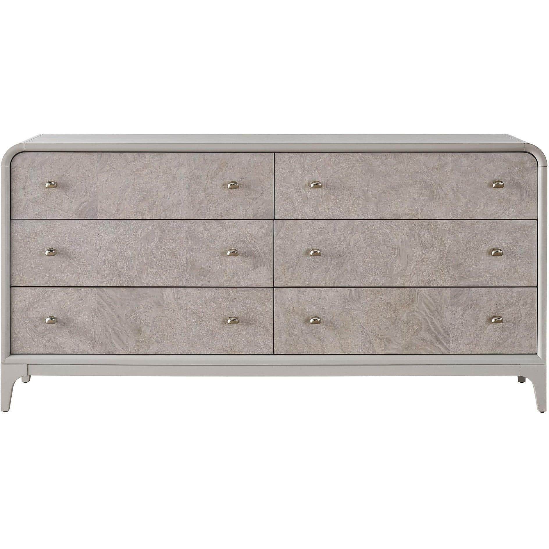 Bring an essential sophistication to bedroom spaces with the Immersion Dresser, a regal statement piece featuring luxurious burl accents complemented by dreamy pull hardware.