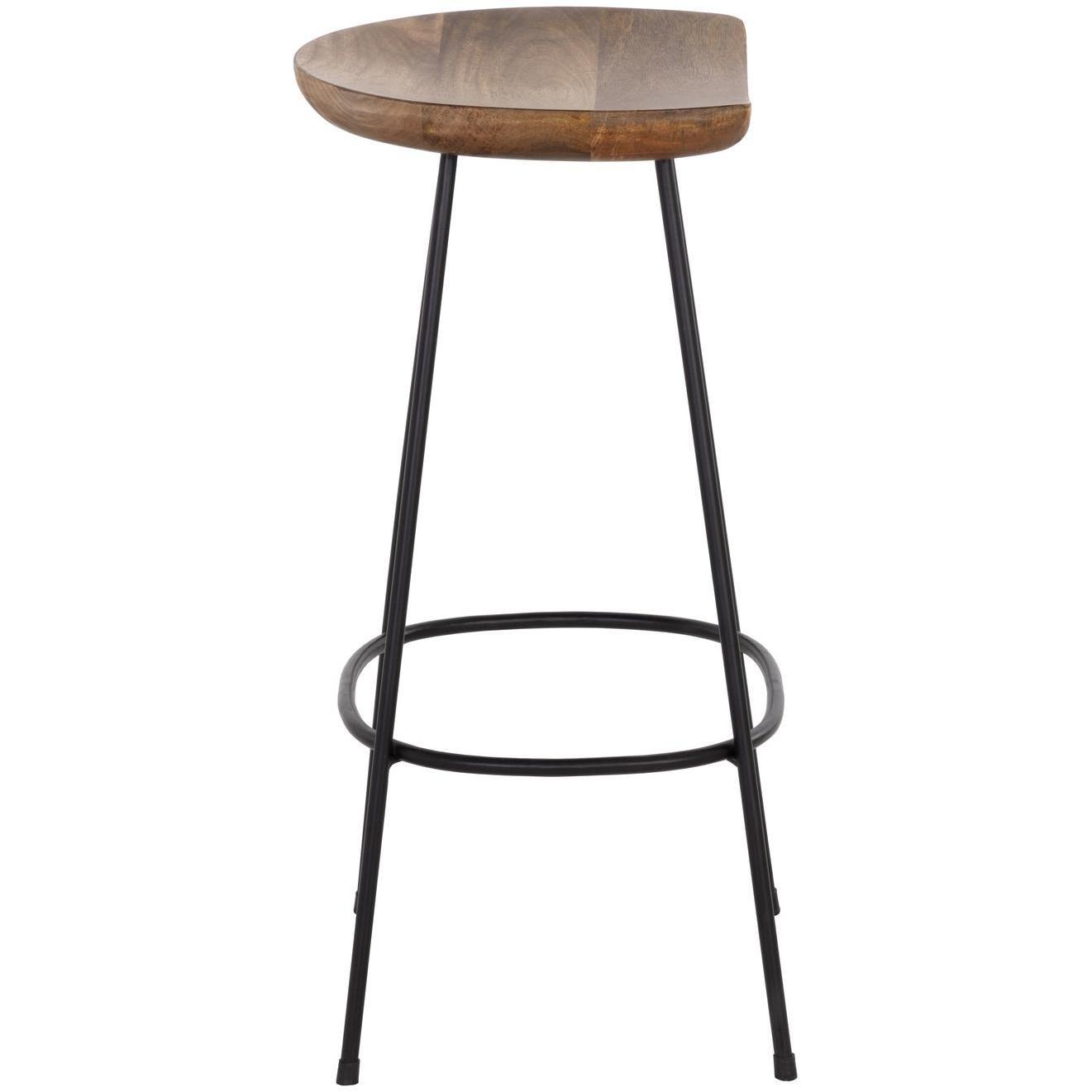 With a toned down coastal design, this counter stool illustrates the beauty of simplicity. Crafted with a brown solid mango wood seat and completed with a black iron frame. Made in India. With refined craftsmanship, this design was brought to life by skilled local artisans. By nature, these materials develop unique imperfections such as fissures, markings and colour variations for a truly one-of-a-kind piece. As wood is an organic, porous material, these pieces will contain natural variation of texture and may also exhibit fine indentations and cracks. Wood pieces will also display a disparity of colour and grain, and visible knots and burls that add to the character of each piece.