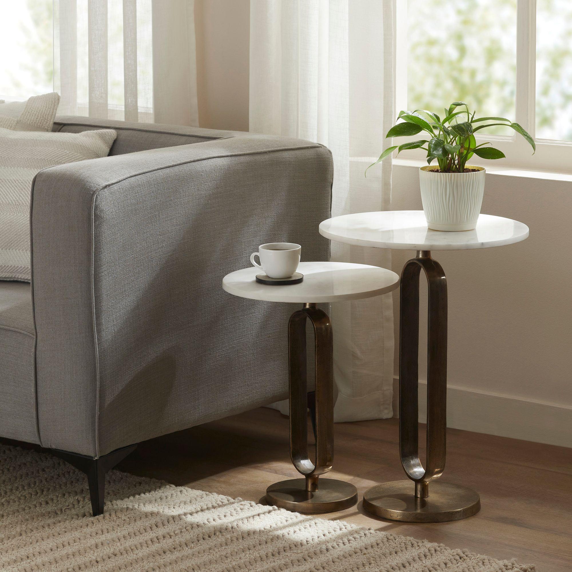 Elevate your living space with the Irene Wide Side Table in Antique Brass. Designed with both durability and style in mind, this side table boasts a high-quality cast aluminum construction with a plated finish, ensuring protection against daily wear and tear. The robust weight makes it perfect for displaying your favorite decor items or holding everyday essentials. Its sleek antique brass finish is suitable for all decor styles, adding a touch of sophistication to any room. Upgrade your home with the Irene Side Table today.