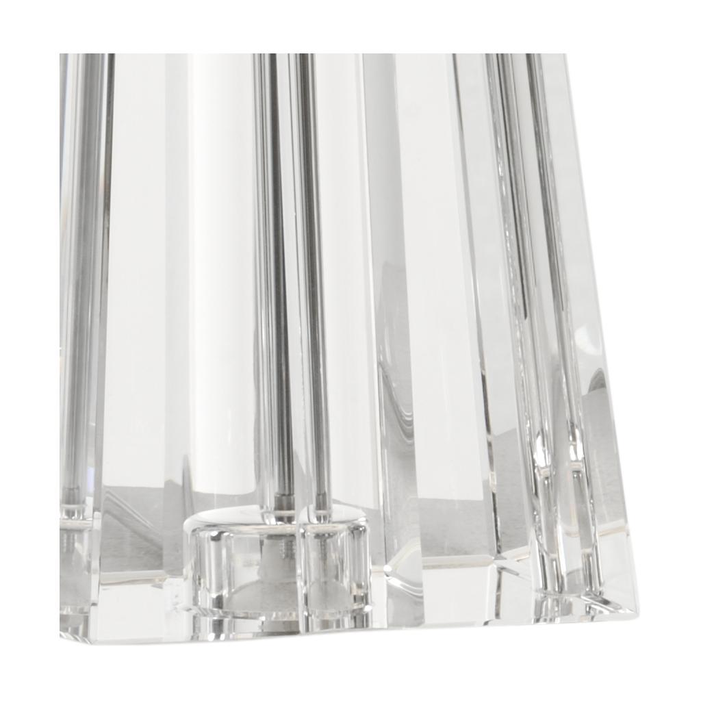 Irina is delicately cut crystal with a scooped notch in the center of each side. The neck is polished nickel.