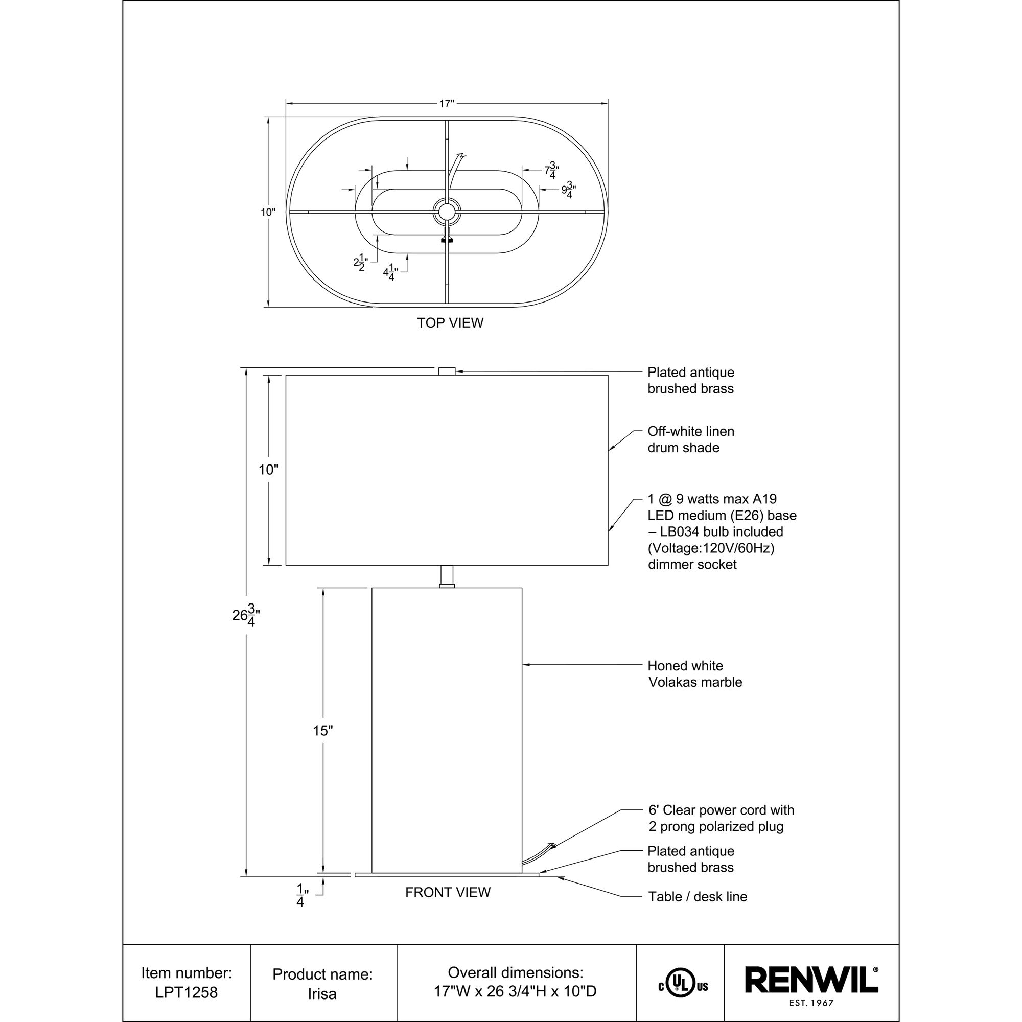 Upgrade your home’s aesthetic with the Irisa 27″ Tall Plated Antique Brushed Brass Iron Table Lamp. Crafted with a sturdy clear cord, this lamp promises lasting performance and a clean design. Its sleek plated antique brushed brass finish and off-white linen drum shade add warmth and elegance to any room. This lamp seamlessly connects with standard E26 sockets and supports bulbs up to 100W, providing compatibility with a wide range of lighting options. Its sturdy clear cord ensures longevity and a clean aesthetic. Its standout feature lies in its customizable lighting with the equipped dimmer socket.