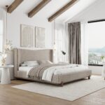 Create an elevated look in your sleeping space with this beauty of a bed. The elegant curves on the headboard are balanced perfectly with the solid wood, walnut-finished base and legs. Perfect in a primary bedroom or a when transition your teen’s room to a more grown-up space.