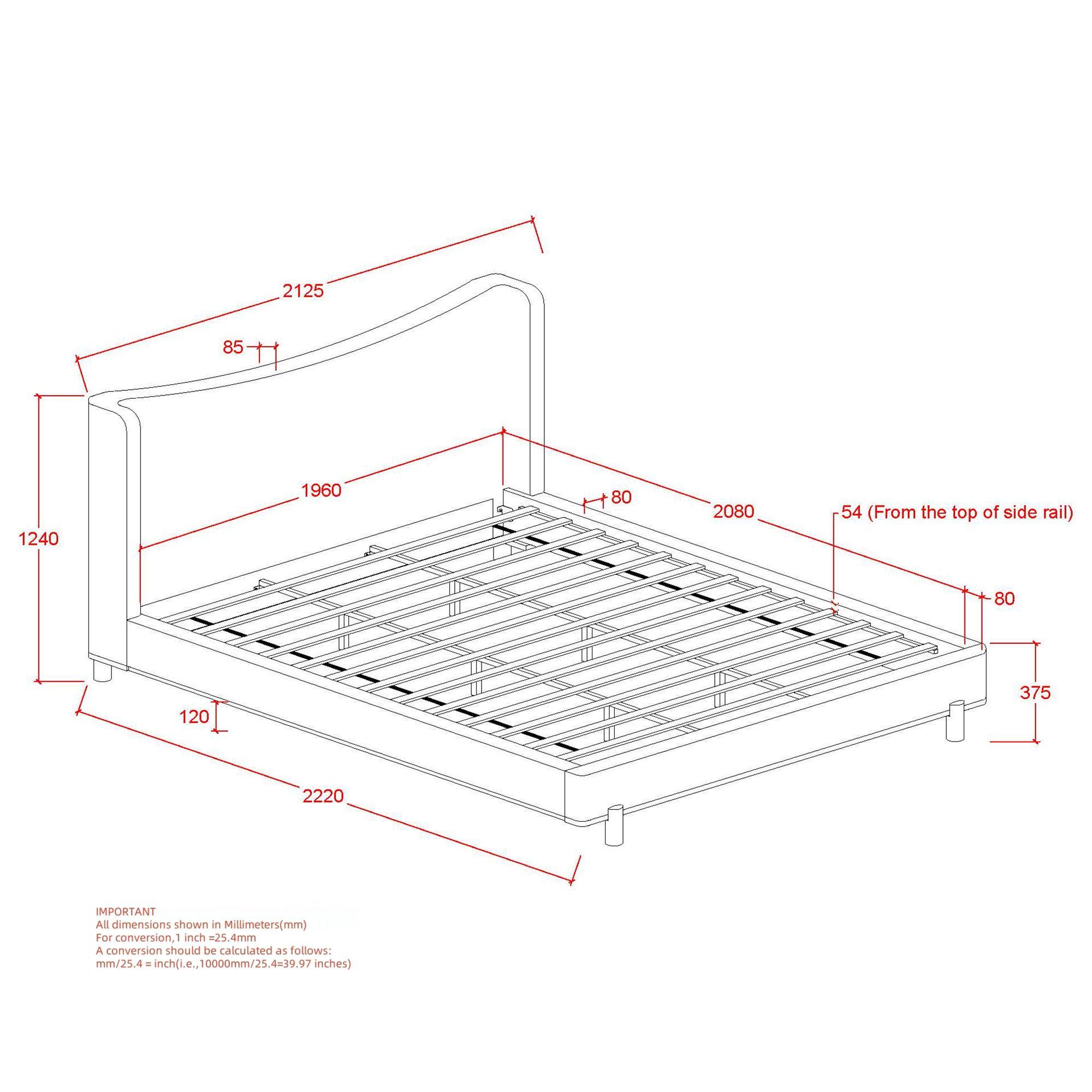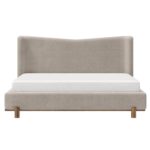 - Curved high headboard, plush rails and footboard with a soft, velvet-like upholstery