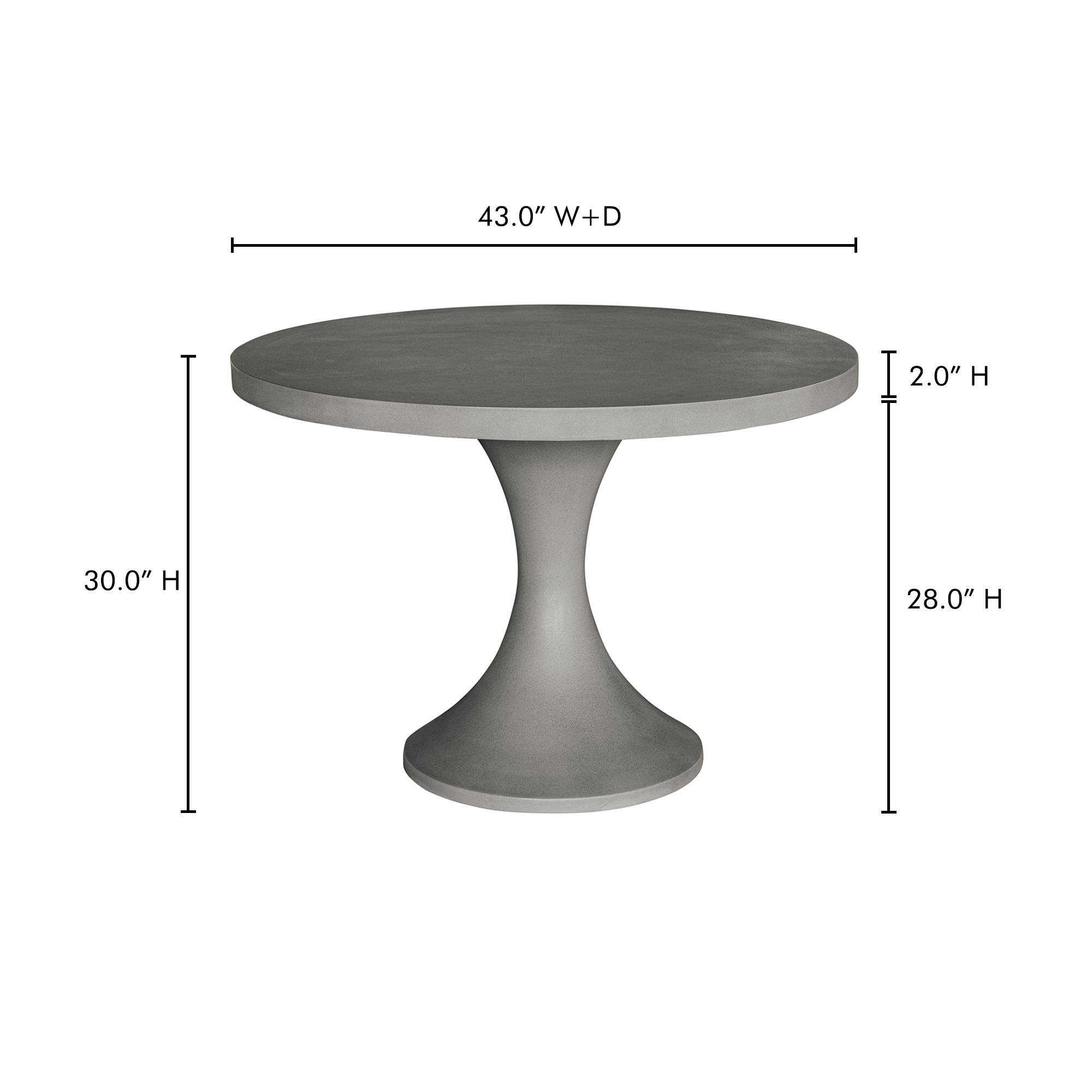The Isadora is a 43.25 round dining table with a concrete base and a mix of cement and natural fibers top.