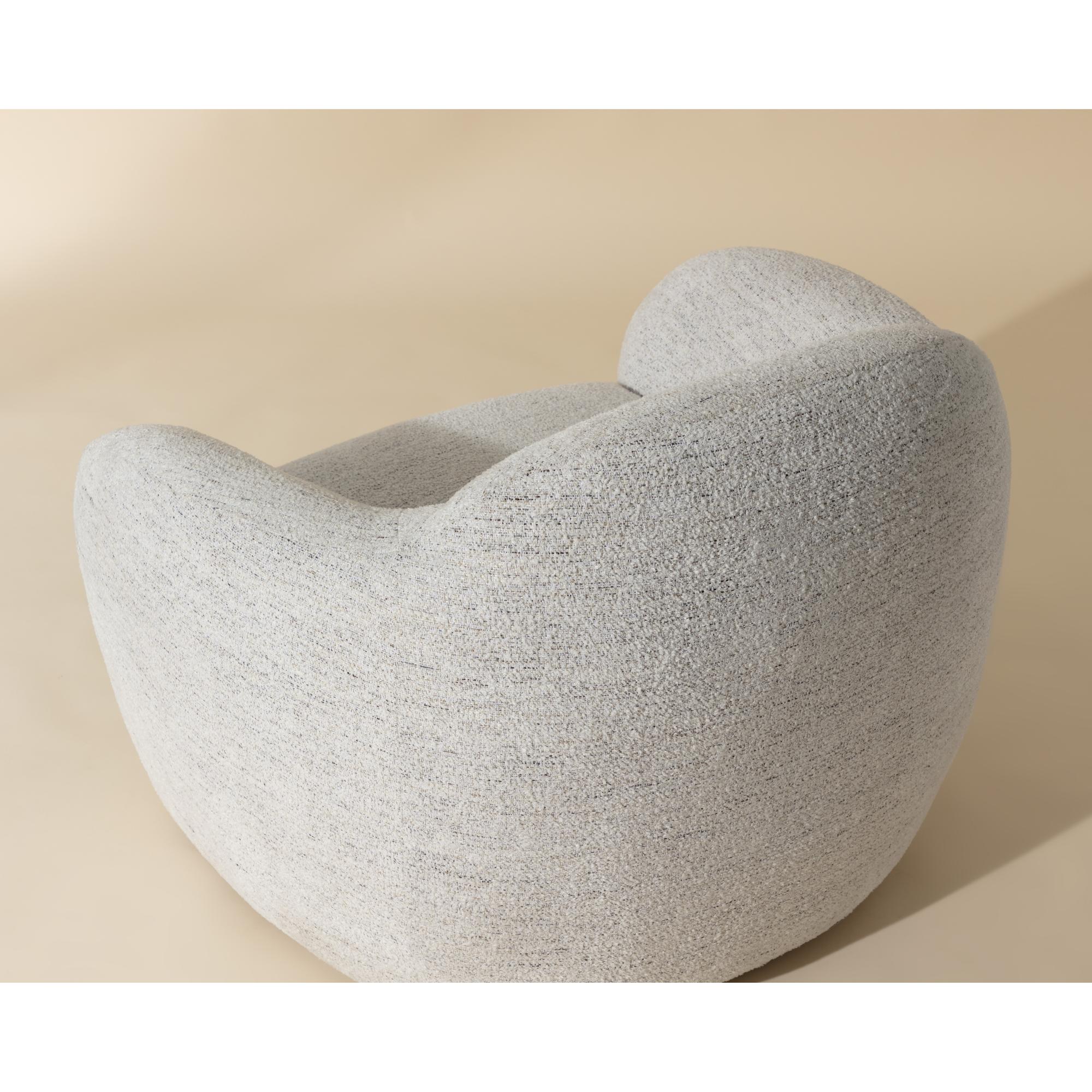 The Ismo Swivel Lounge Chair’s generous curves and cushioned contours create a comfortable nook that brings sublime solace. Fully upholstered in hailey moon fabric, this beautifully rounded lounge chair is a modern art piece.