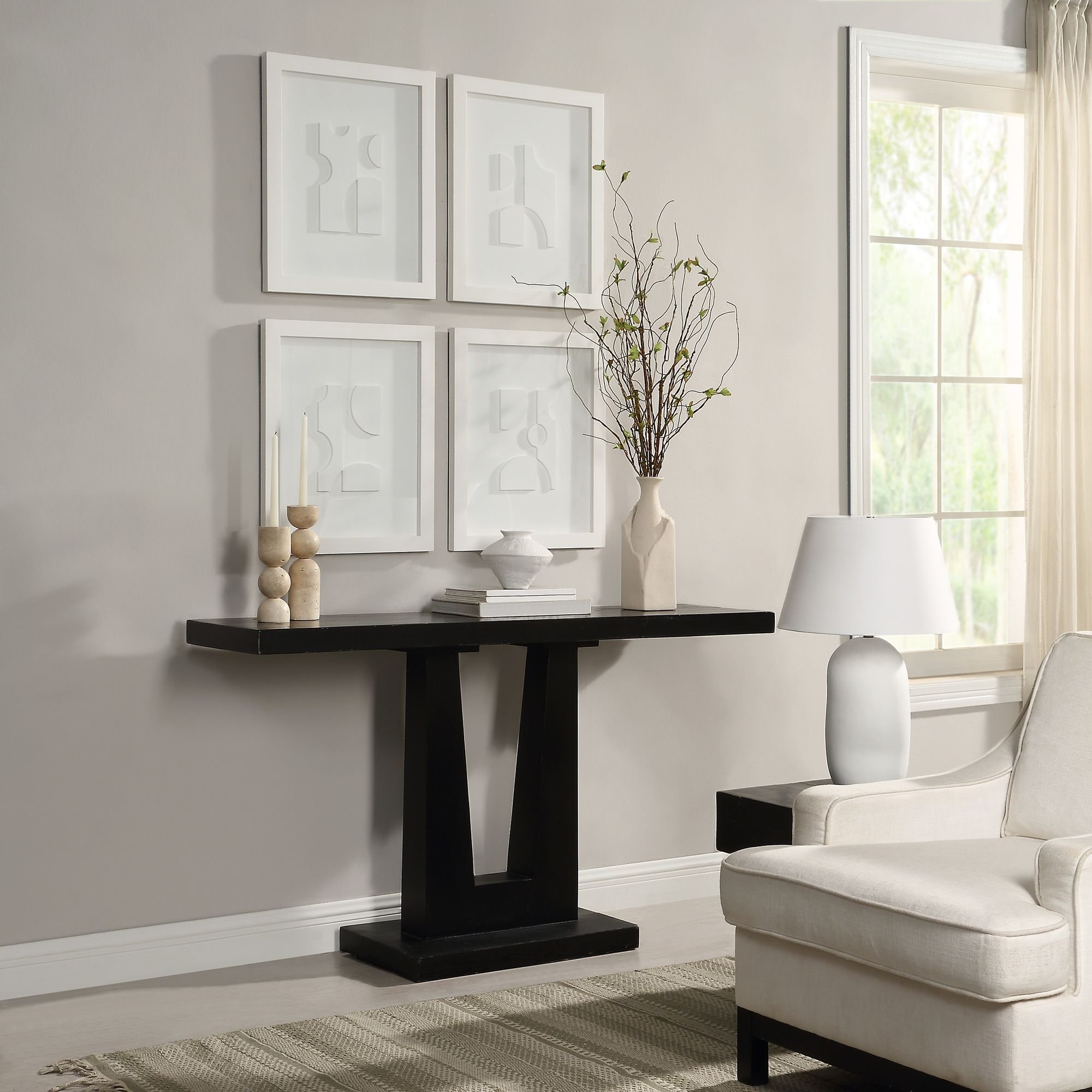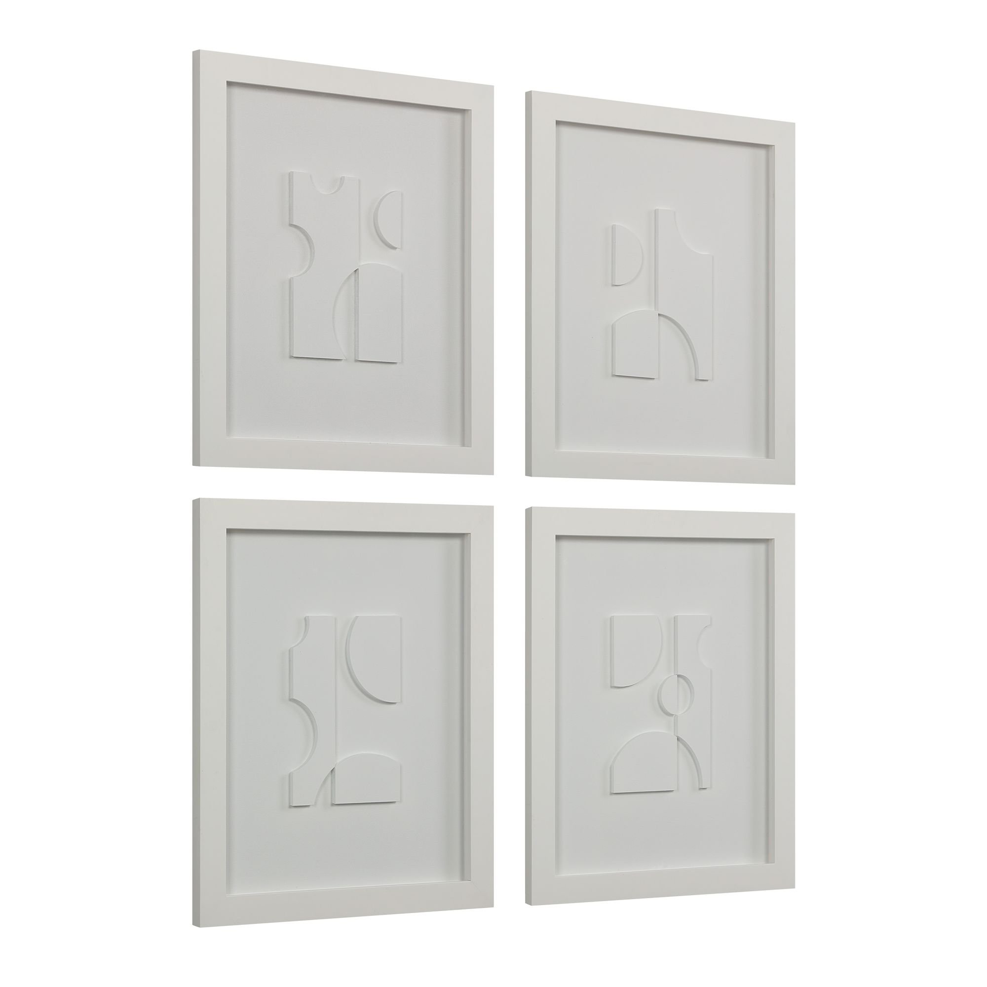 Canadian designer and interior stylist, Arren Williams conceived this stunning 4-piece set of wall art with light and shadow in mind. Crafted using molded shapes in matte white and framed in solid wood, this stylish collection of ready-to-hang art offers vertical or horizontal hanging, ensuring display perfection in any contemporary space.