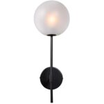 Accentuate any wall space with this modern sconce that is stylish and functional. Features a frosted glass sphere shade with a black powder coated metal frame.