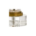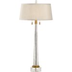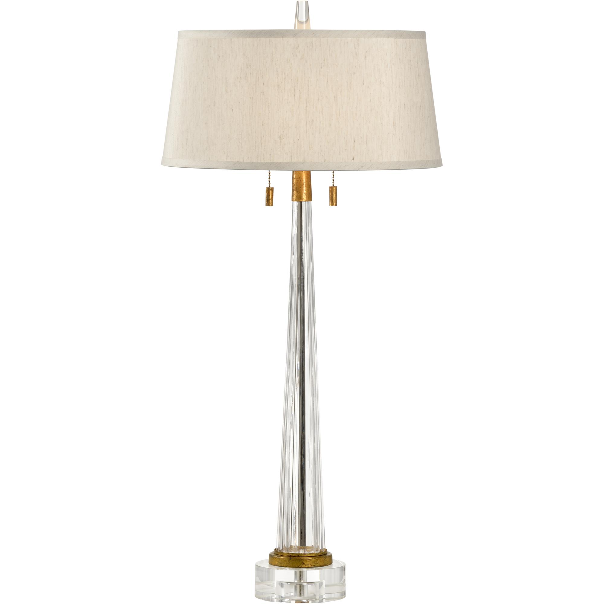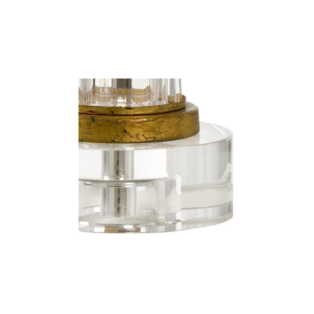 Traditional design and modern flair combine to form an upscale table lamp. J. Graham features a clear glass fluted column, clear crystal mounting and antique gold leaf details. Pair this classic style with a shallow, modern drum shade for an accent lamp that blends effortlessly with any existing decor.