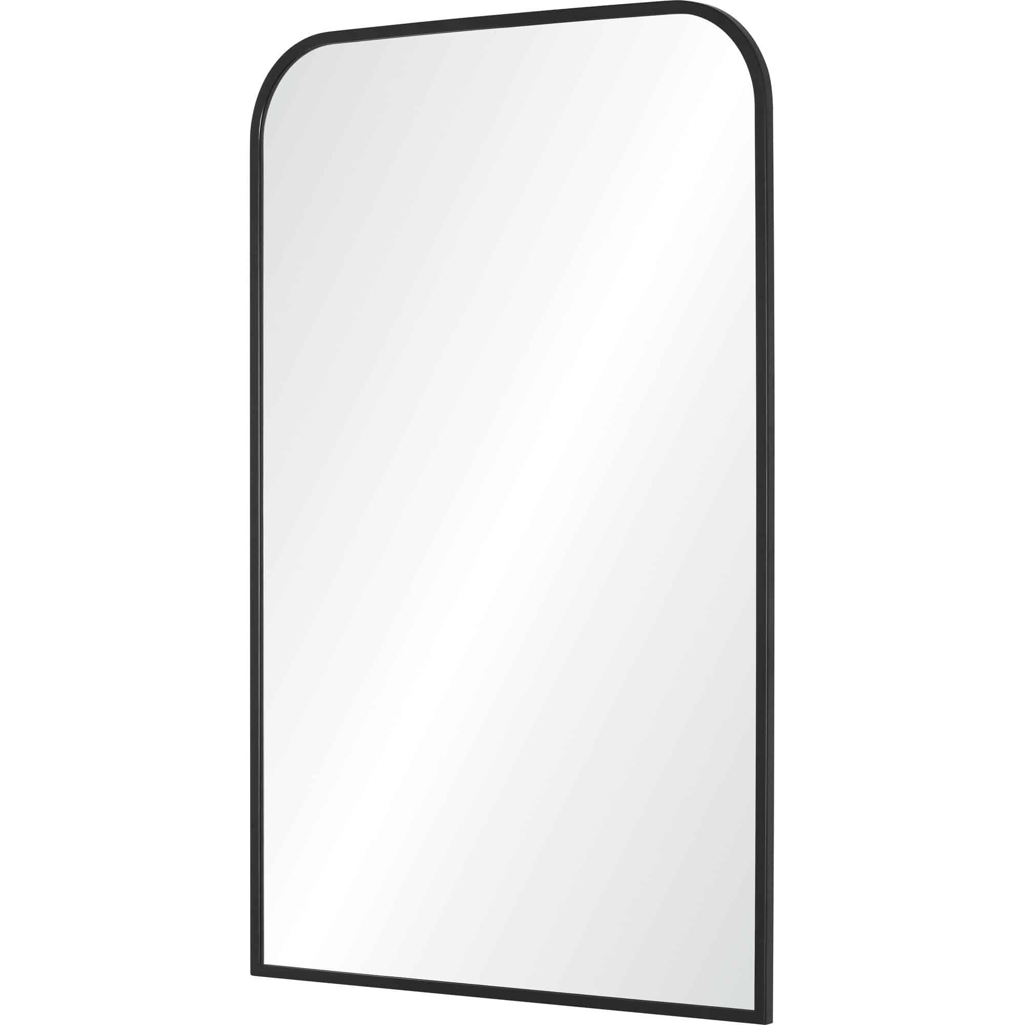 Harsh and soft angles intertwine in this mirror design. Cast in the contemporary space, it can integrate into the interior while making a stylish statement. An iron structure with a matte black painted finish, it easily ties all the other decor accessories together.