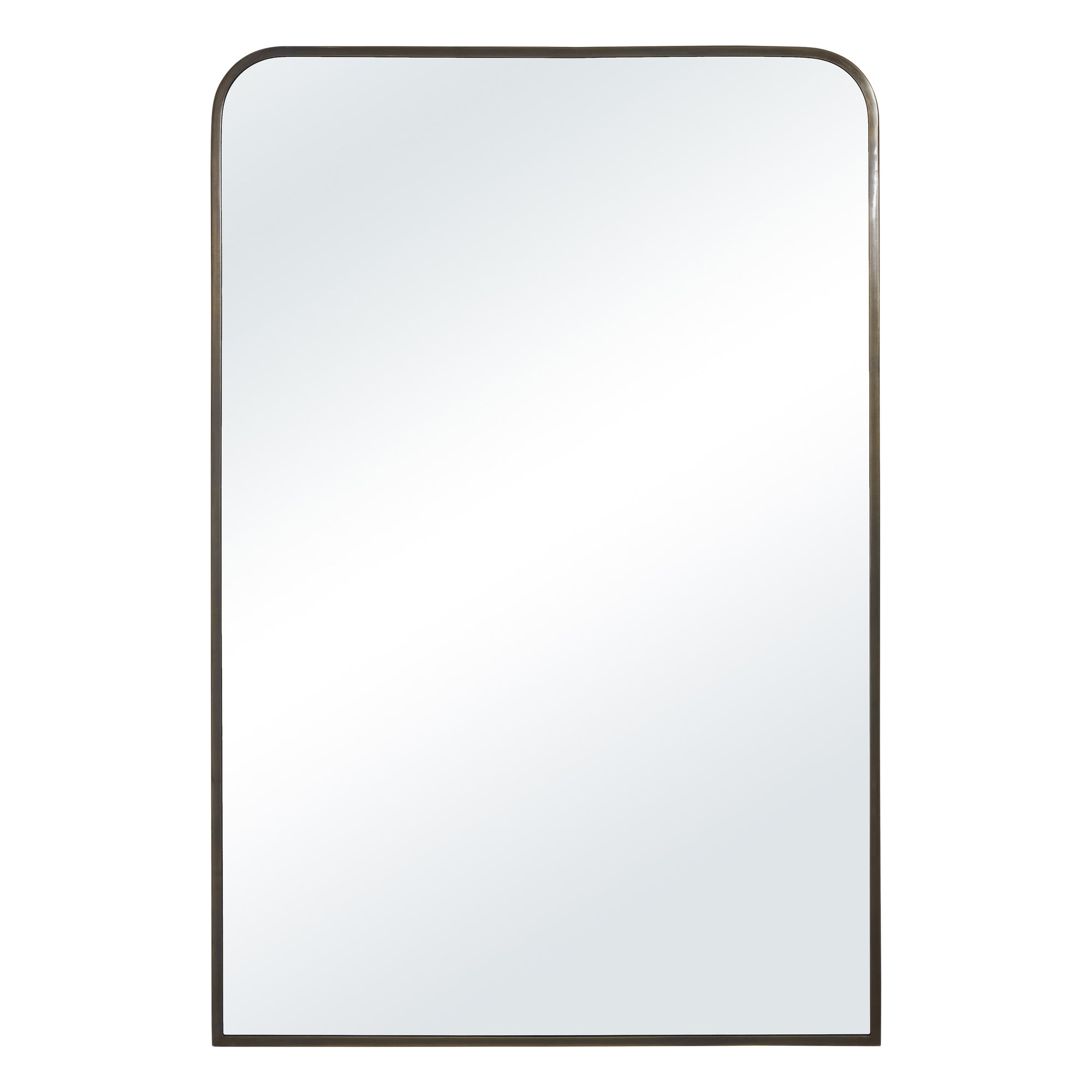 Possessing a modern and timeless quality at once, this mirror complements decor elements in its vicinity while making a stylish statement of its own. At 24 by 36 inches, it holds idyllic dimensions to rest atop a vanity or dresser. With a gold powder-coated iron frame, it is an optimal fit within a mid-century modern interior, with the ability to go classic when styled for such.