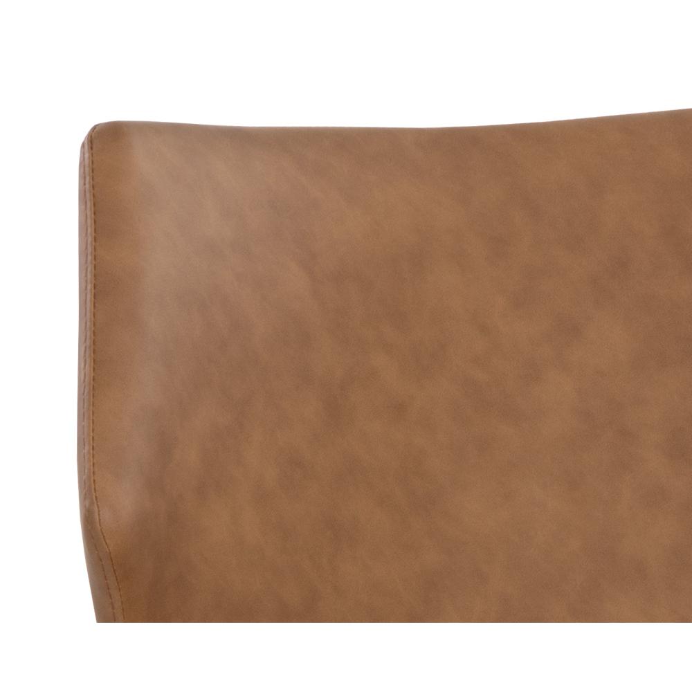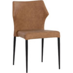 With a distinctly shaped backrest, this stackable modern dining chair is a great addition to any dining space. Stocked in bounce nut faux leather with a stylish open seamed zipper on the back. Completed with powder-coated steel legs in black.