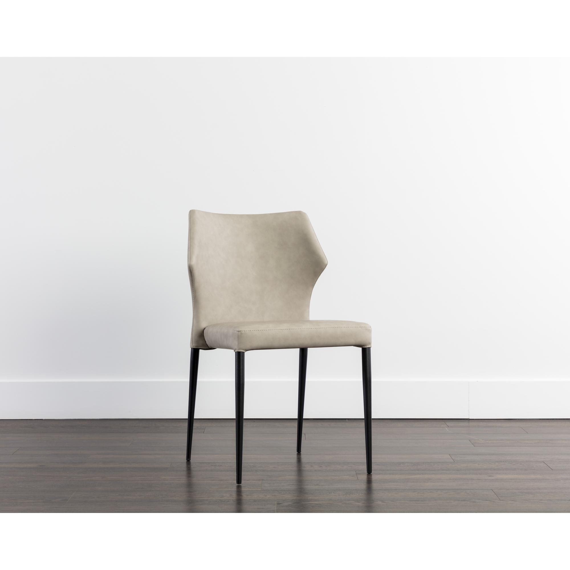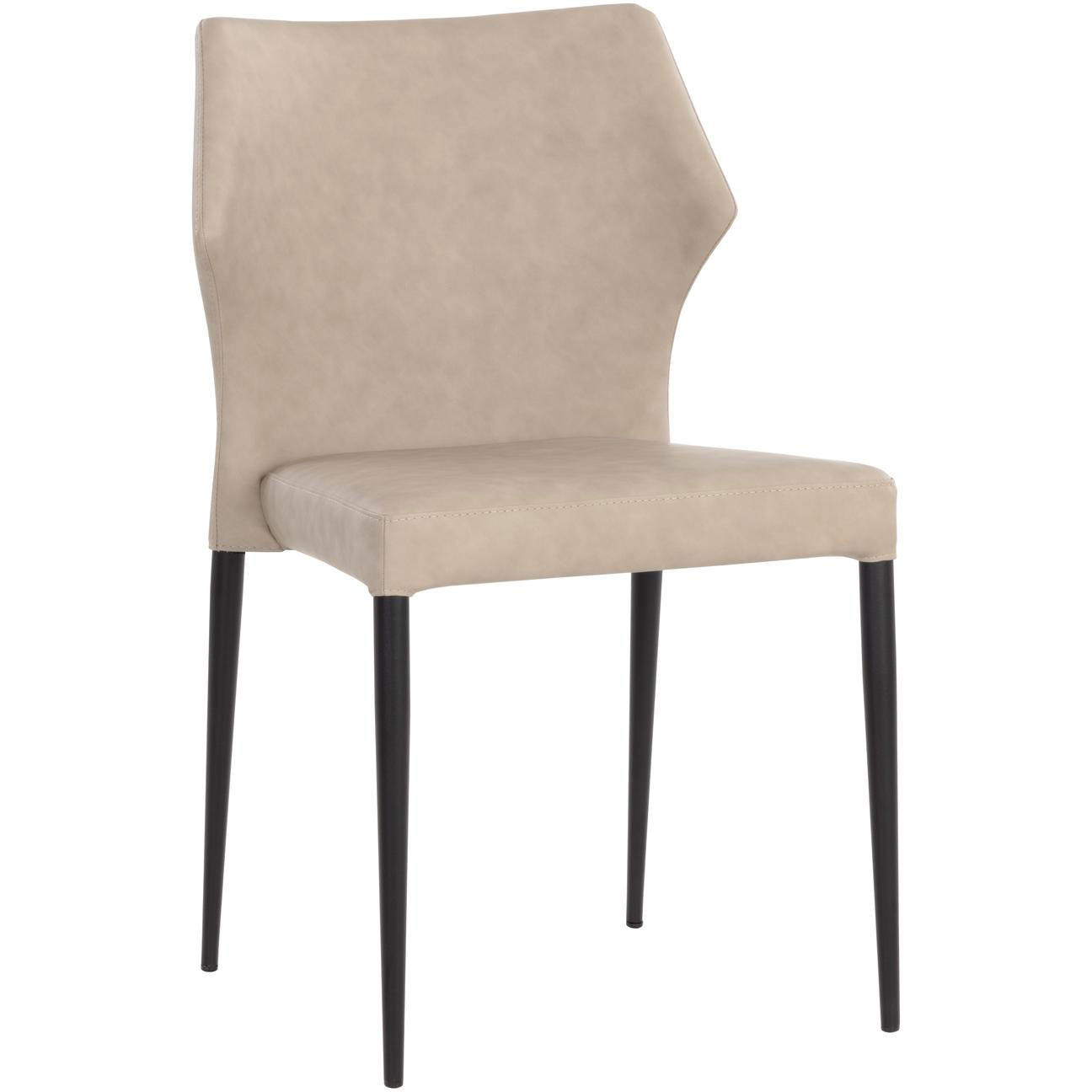With a distinctly shaped backrest, this stackable modern dining chair is a great addition to any dining space. Stocked in bounce stone faux leather with a stylish open seamed zipper on the back. Completed with powder coated steel legs in black. Handle With Care: This design has been crafted with faux leather. Faux leather is manufactured to reflect the natural characteristics of leather; as such, colour variations, markings wrinkles, grooves, and light scratches are appreciated characteristics. No two pieces will be alike.