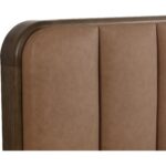With its super plush design, the Jamille bed is as soft as it is inviting. Upholstered in milliken cognac faux leather with channel tufting on the extra thick headboard. A brown solid oak wood frame beautifully complements the look.