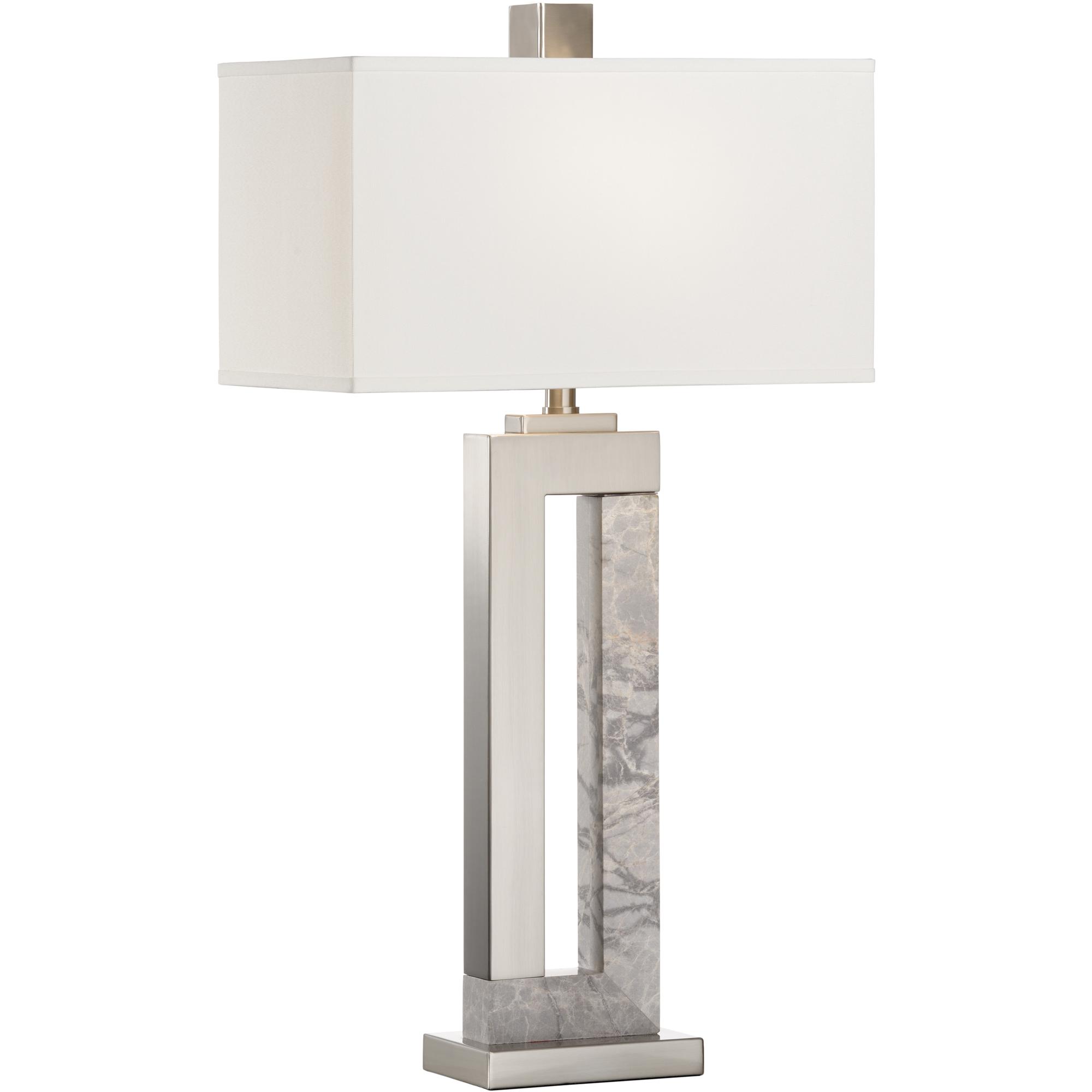 Gray marble and brushed nickel lamp with brushed nickel mounting