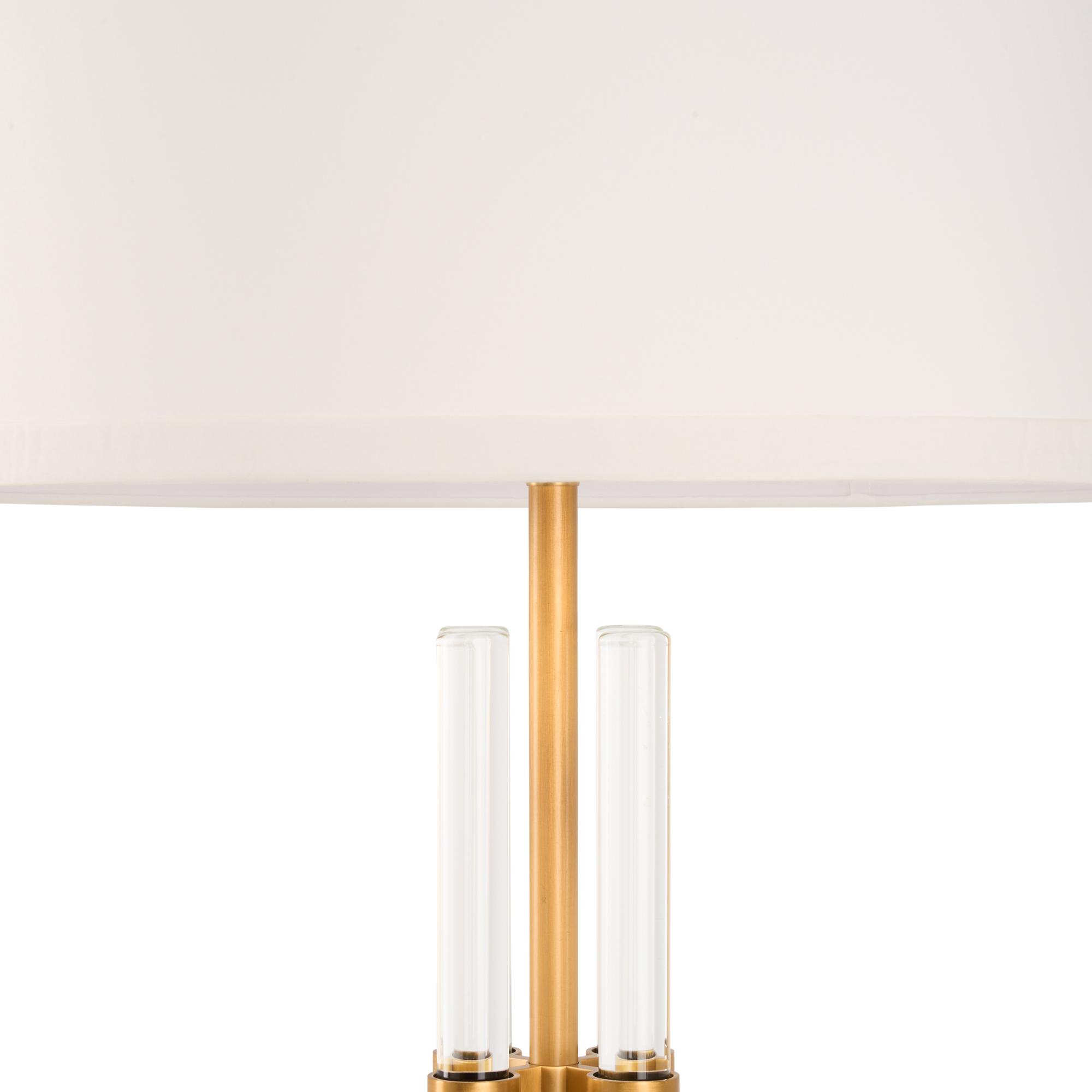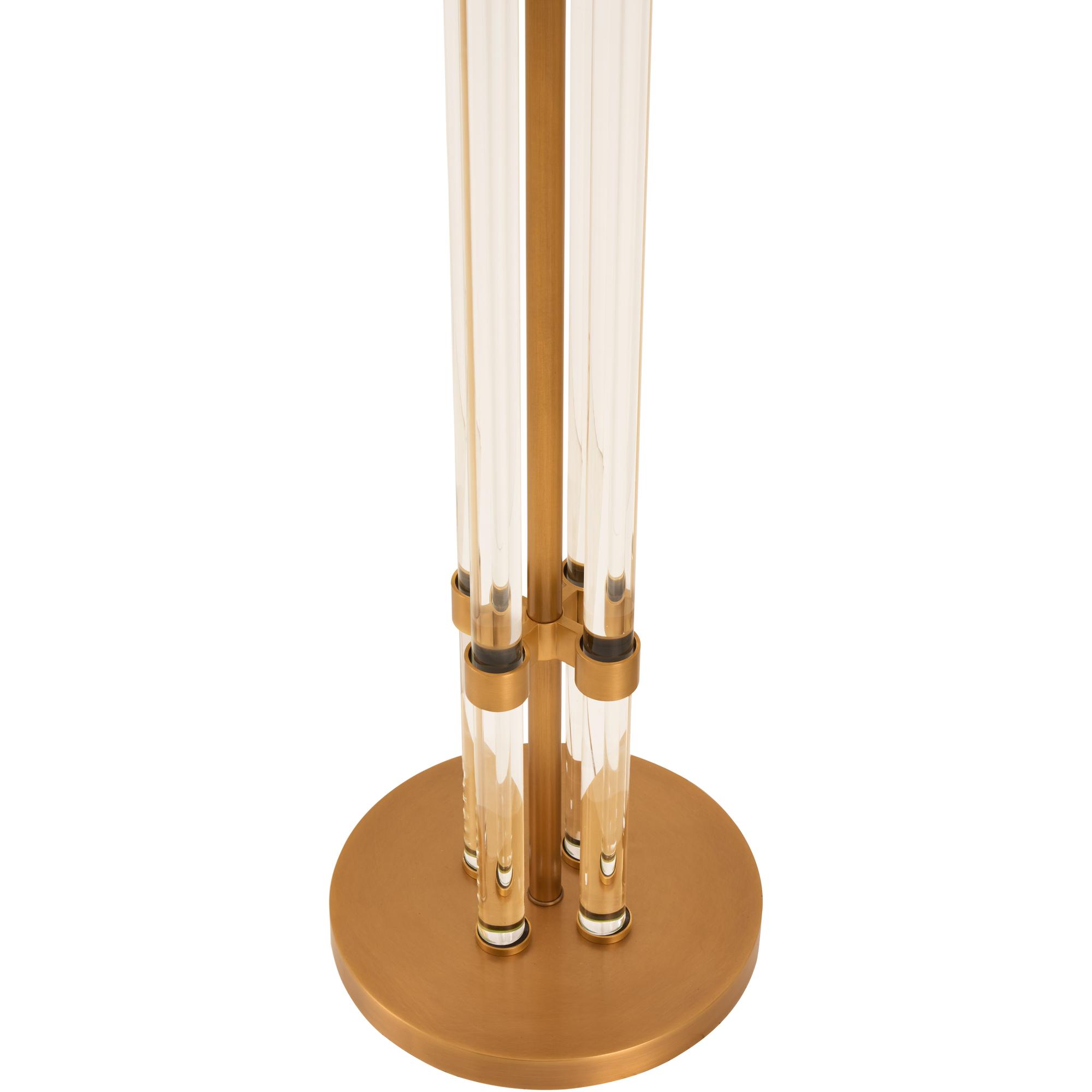 The Jefferson Floor Lamp brings refined elegance to any space with its four crystal rods anchored by antique brass detailing. A timeless silhouette and warm metallic accents make it a striking blend of classic and contemporary design.