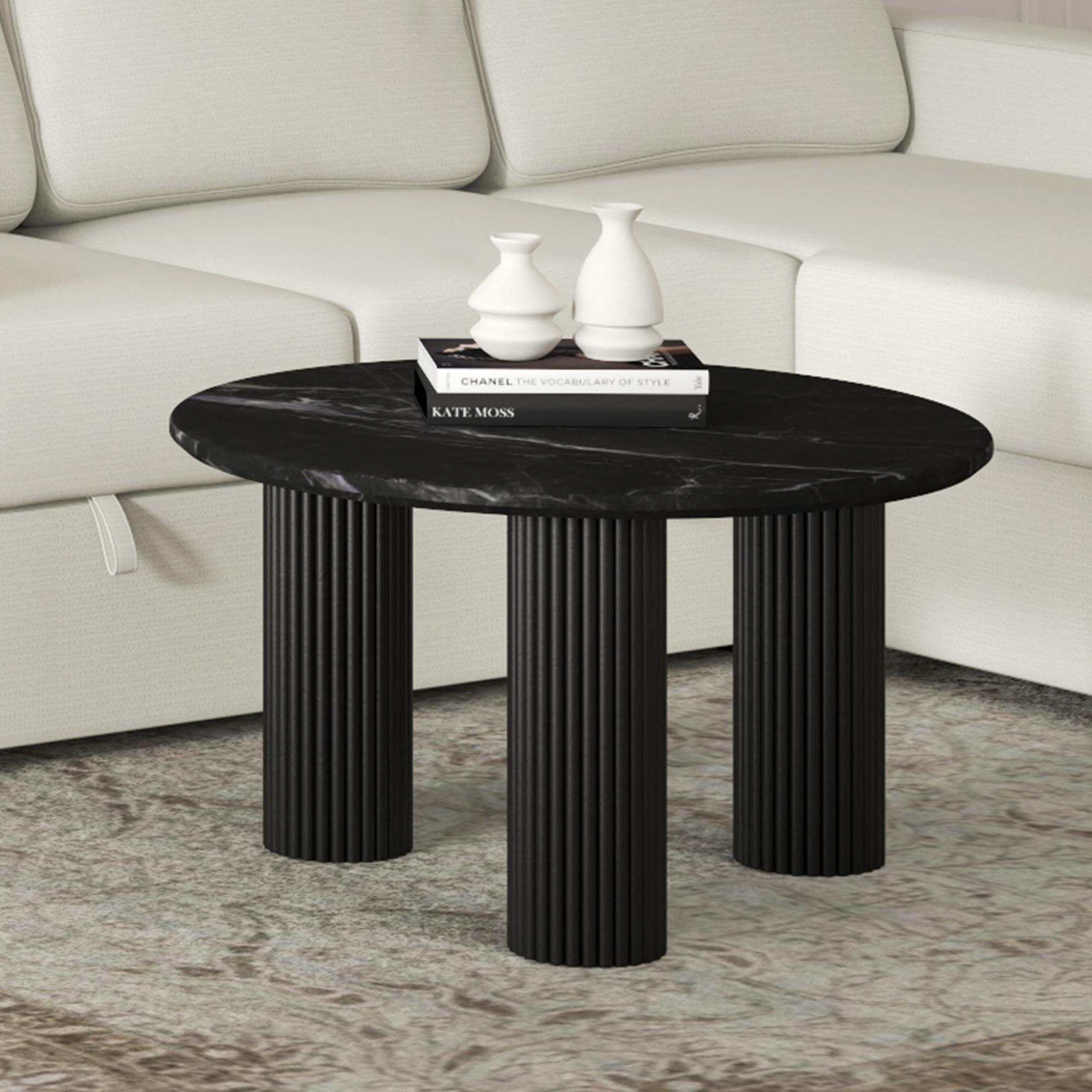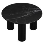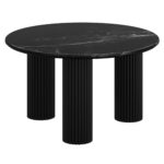 This gorgeous and sophisticated table is meticulously crafted from sustainably-sourced, solid mango wood, providing a rich and sturdy foundation. The reeded finish on the pedestal is perfectly topped with a thick, bevelled marble top creating a refined piece that will elevate your carefully designed space.