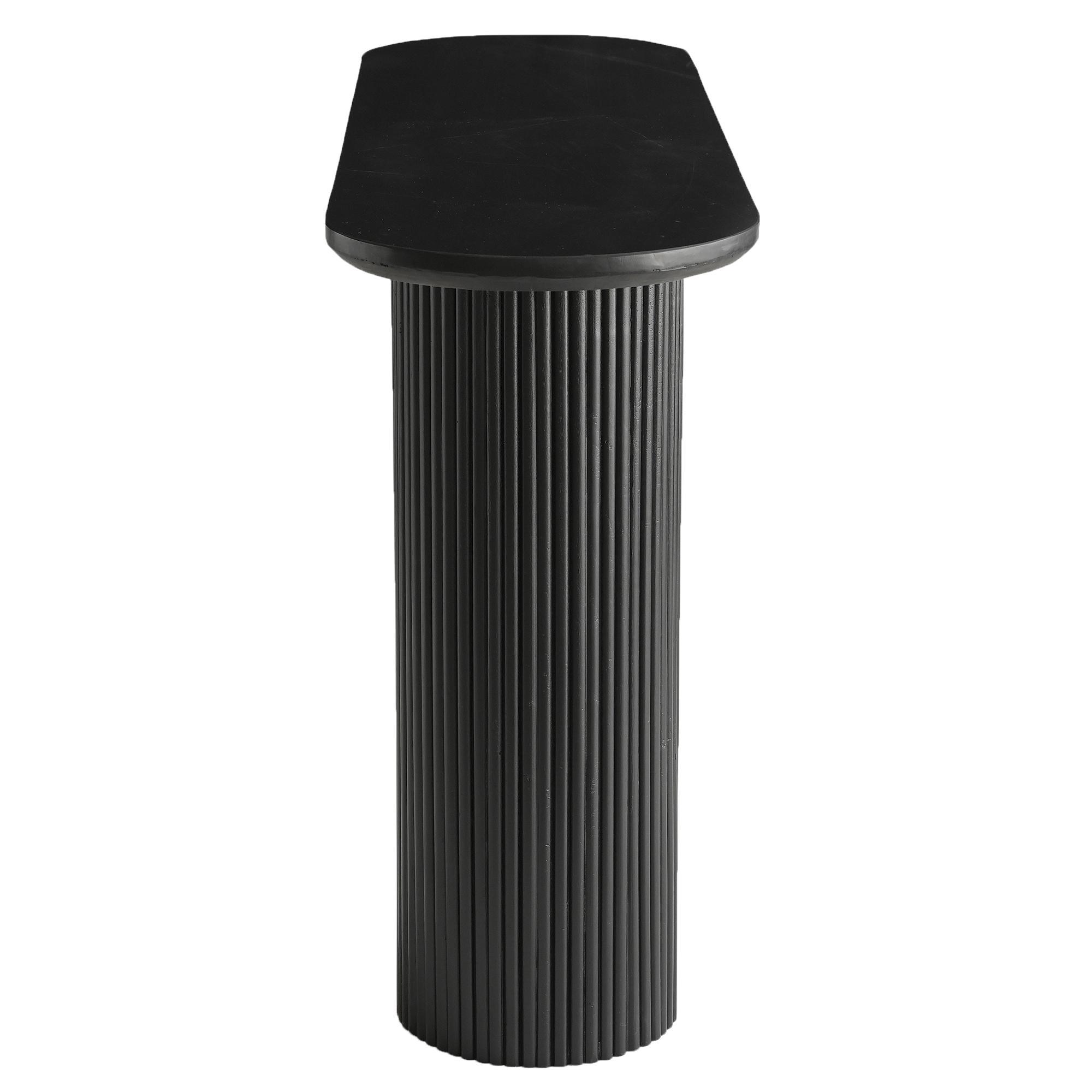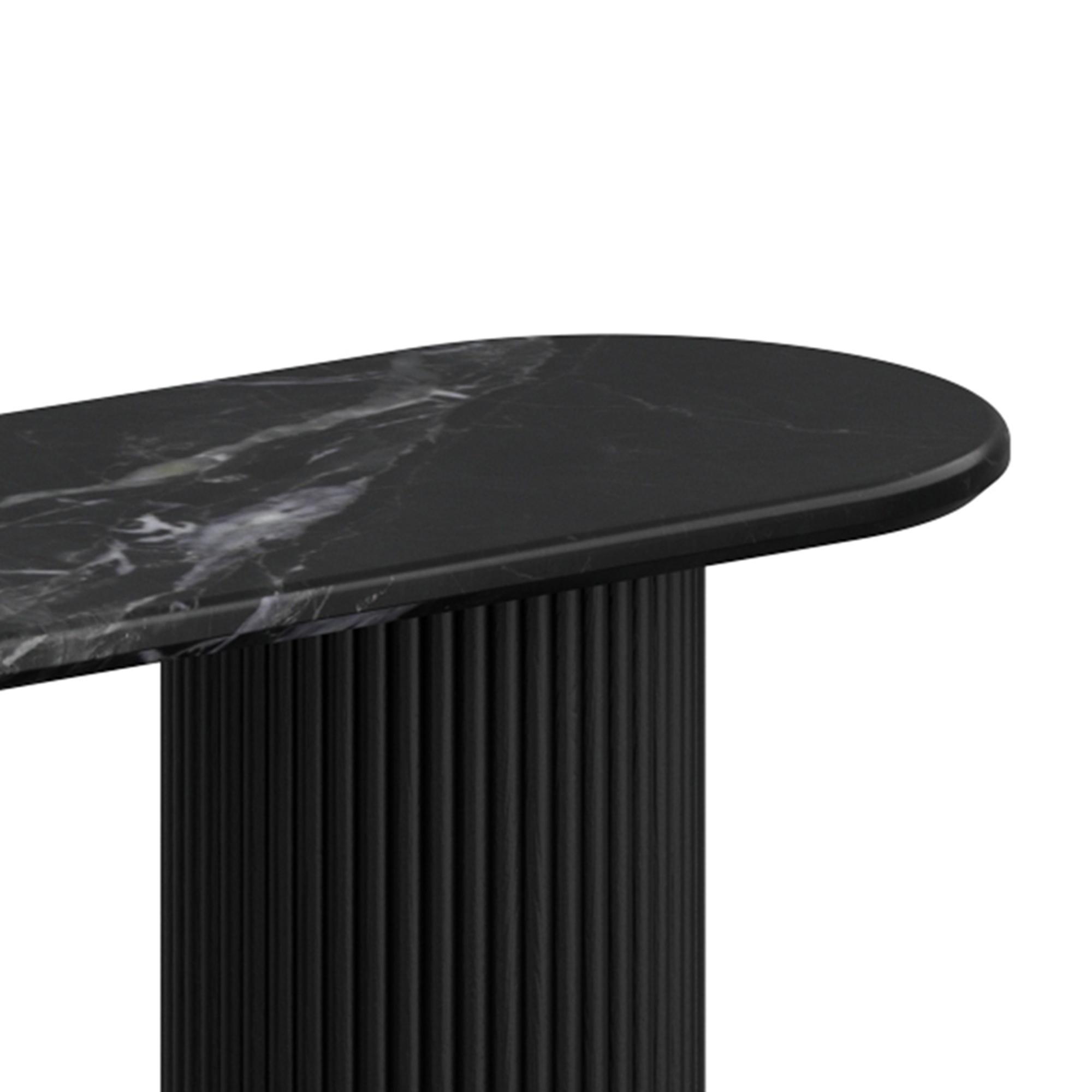 This gorgeous and sophisticated table is meticulously crafted from sustainably-sourced, solid mango wood, providing a rich and sturdy foundation. The reeded finish on the pedestal is perfectly topped with a thick, bevelled marble top creating a refined piece that will elevate your carefully designed space.