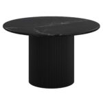 - Wide pedestal solid mango wood reeded base in a black finish