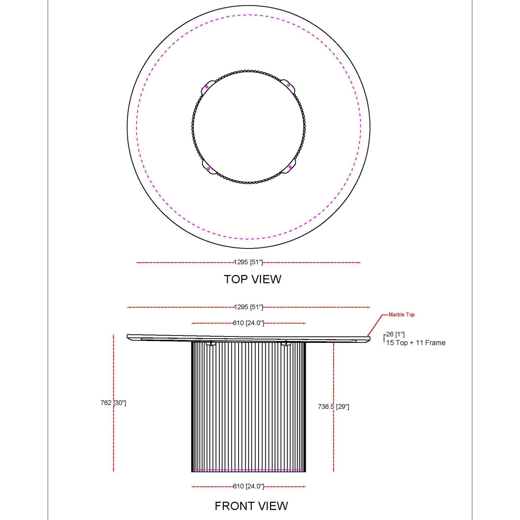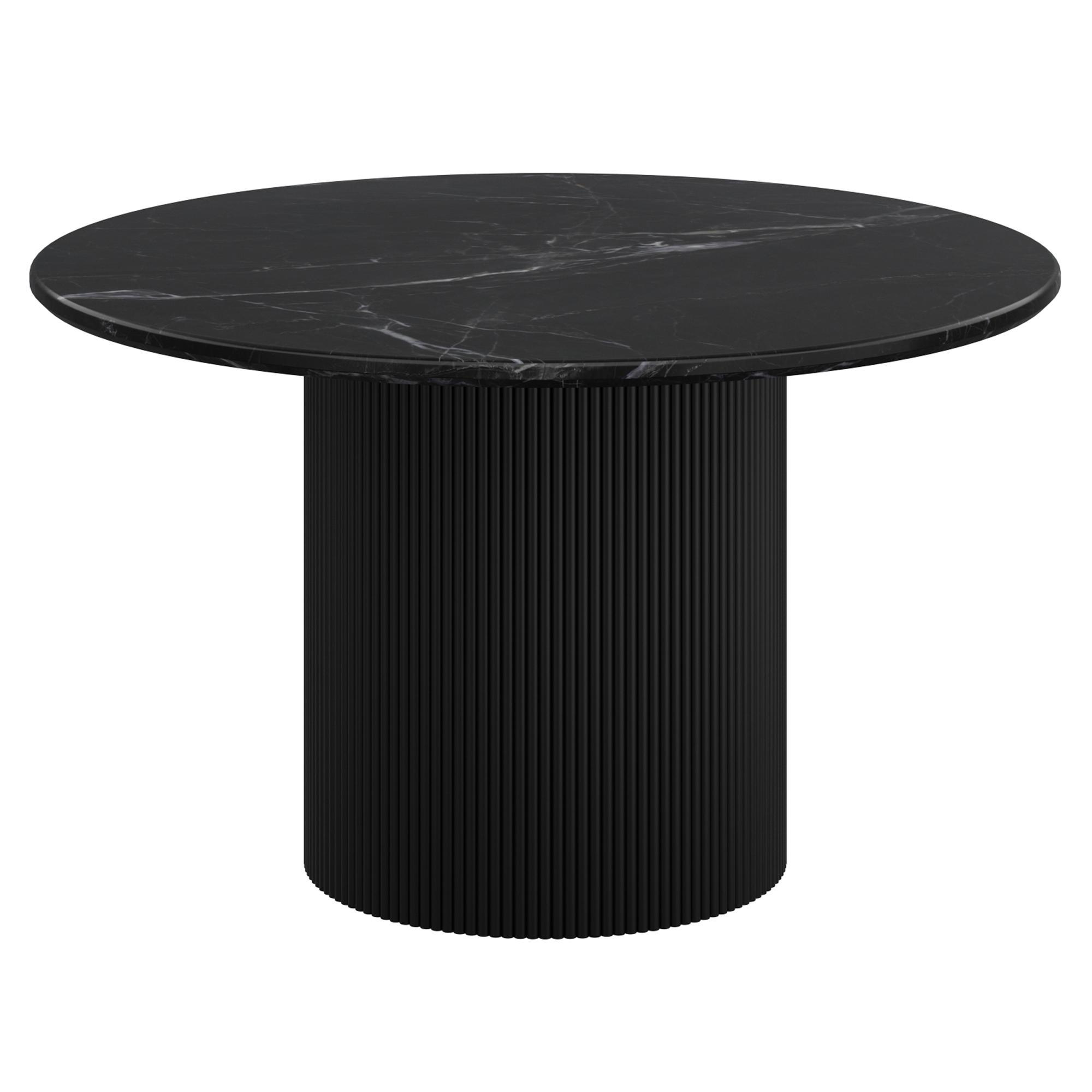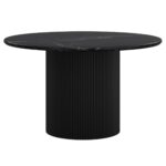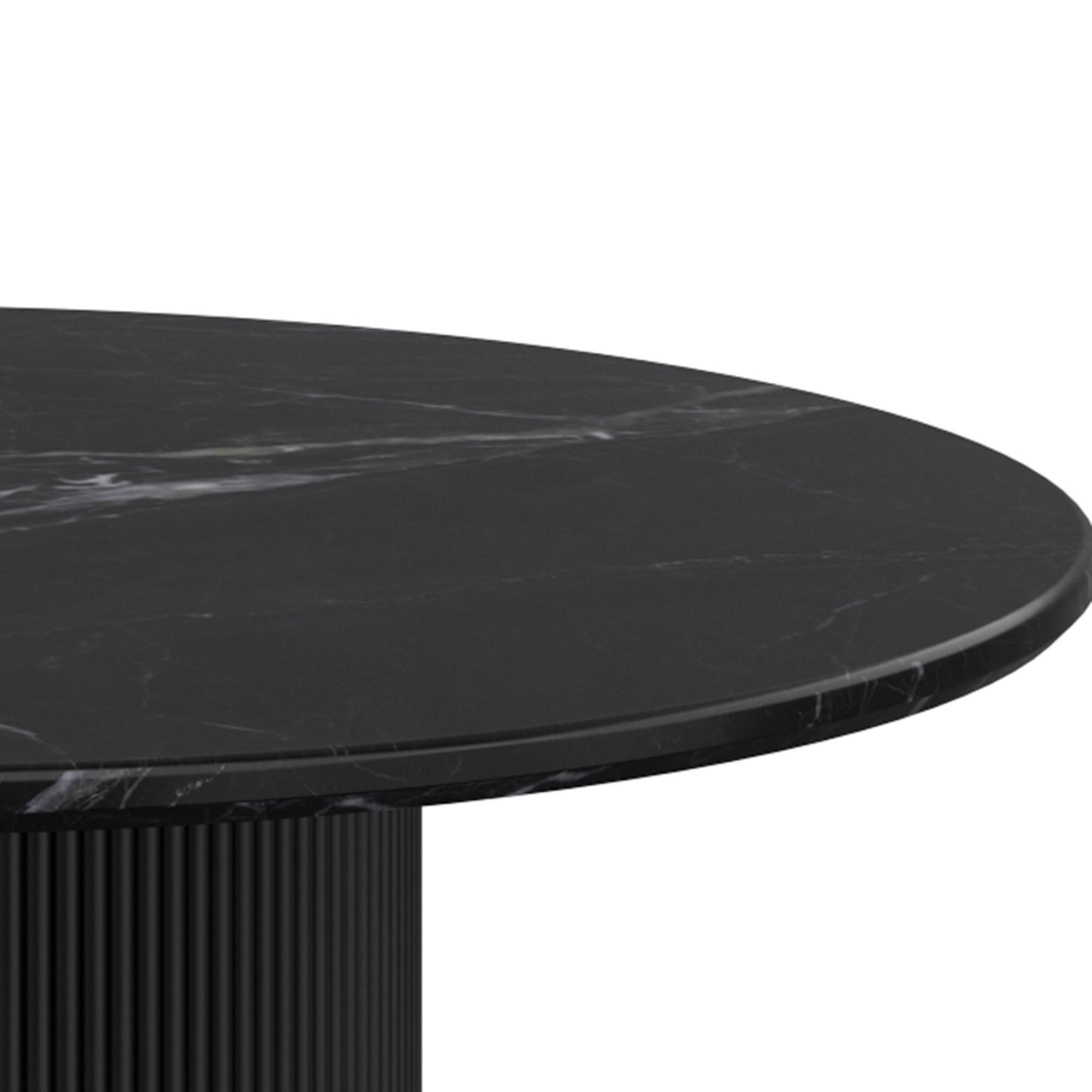 This gorgeous and sophisticated table is meticulously crafted from sustainably-sourced, solid mango wood, providing a rich and sturdy foundation. The reeded finish on the pedestal is perfectly topped with a thick, bevelled marble top creating a refined piece that will elevate your carefully designed space. Large enough to comfortably fit up to 6 chairs.